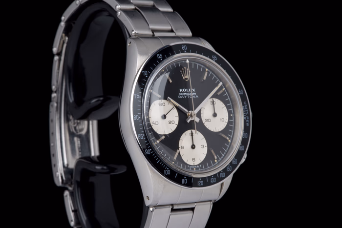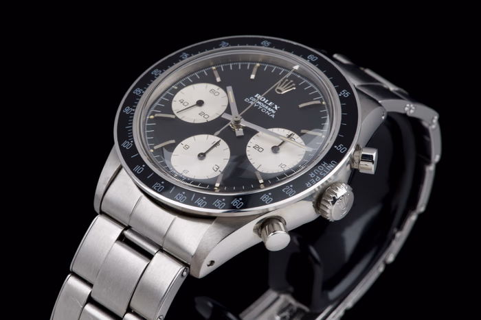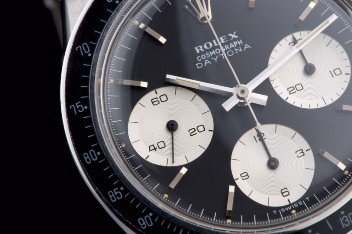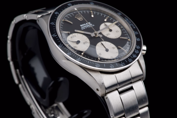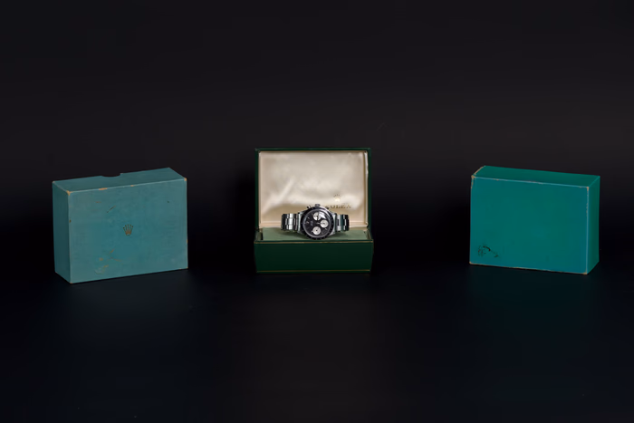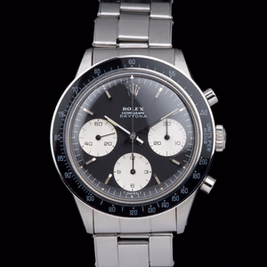 An exceptionally well-preserved and extremely rare example of the Rolex Cosmograph Daytona reference 6241, produced in 1968 and fitted with the coveted black “Big Logo” dial.