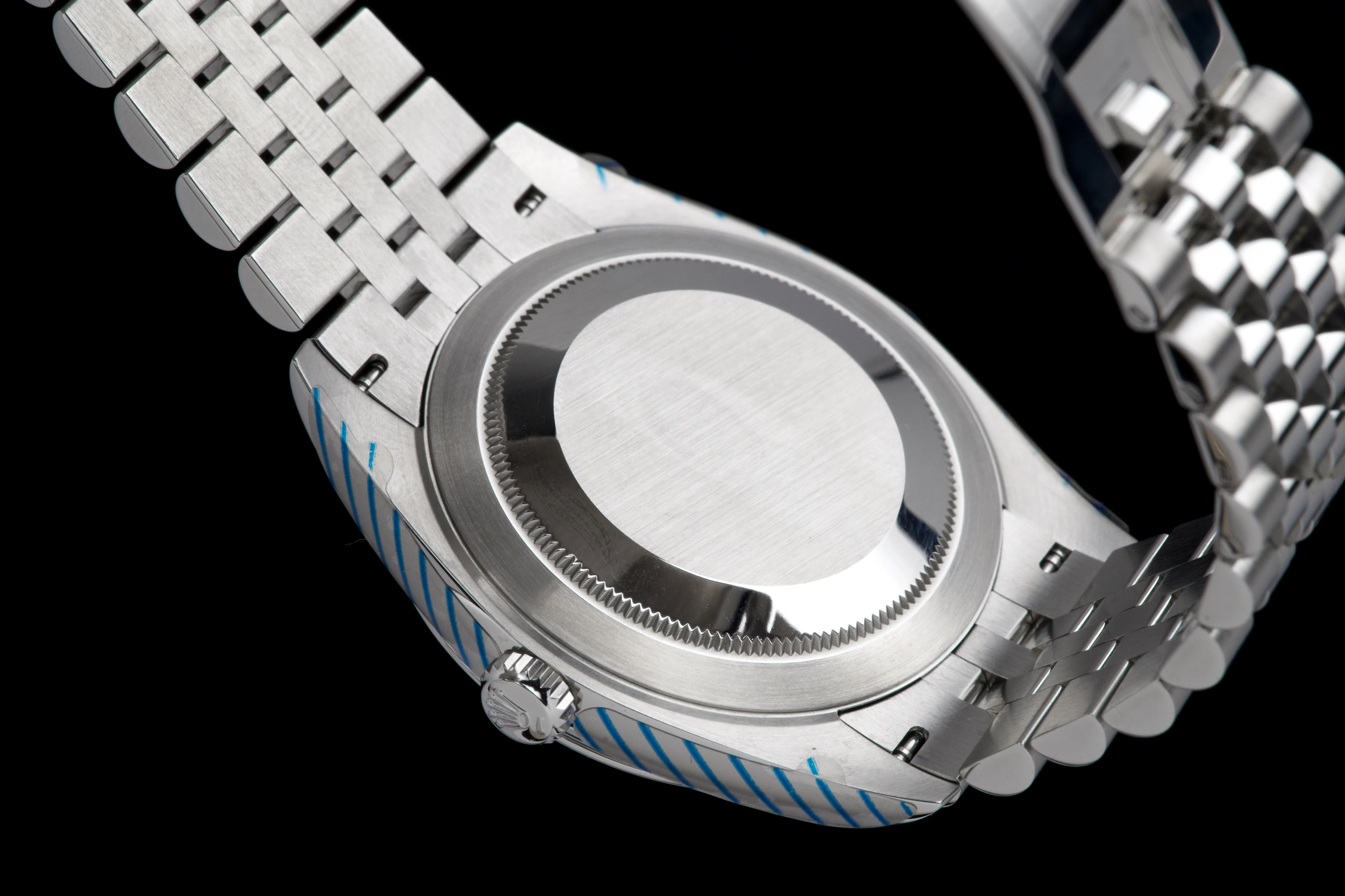 The watch has been polished by Rolex and still retains protective stickers on the sides of the case from the service. It is presented in top condition.