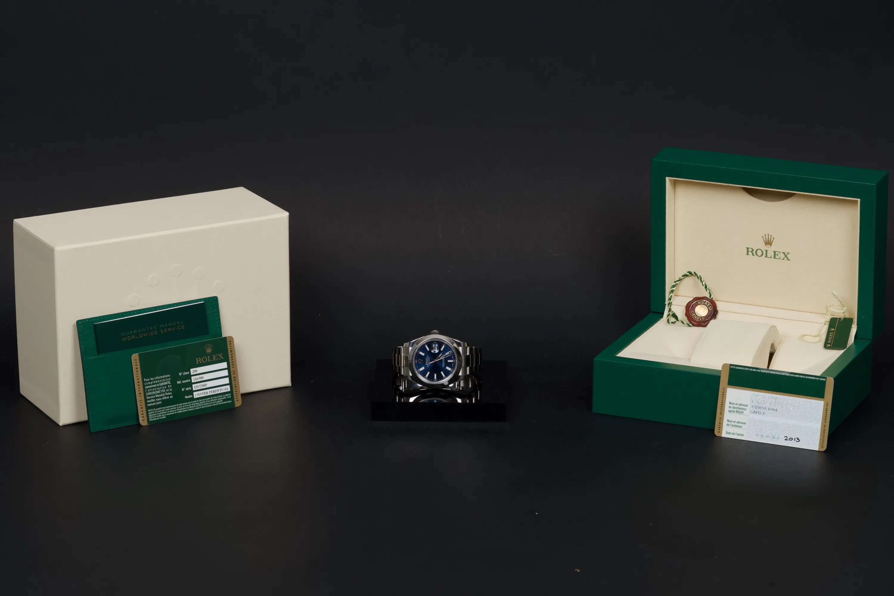 According to the accompanying documentation, the watch was originally sold new in Athens and has remained in the hands of a single owner since its initial purchase.