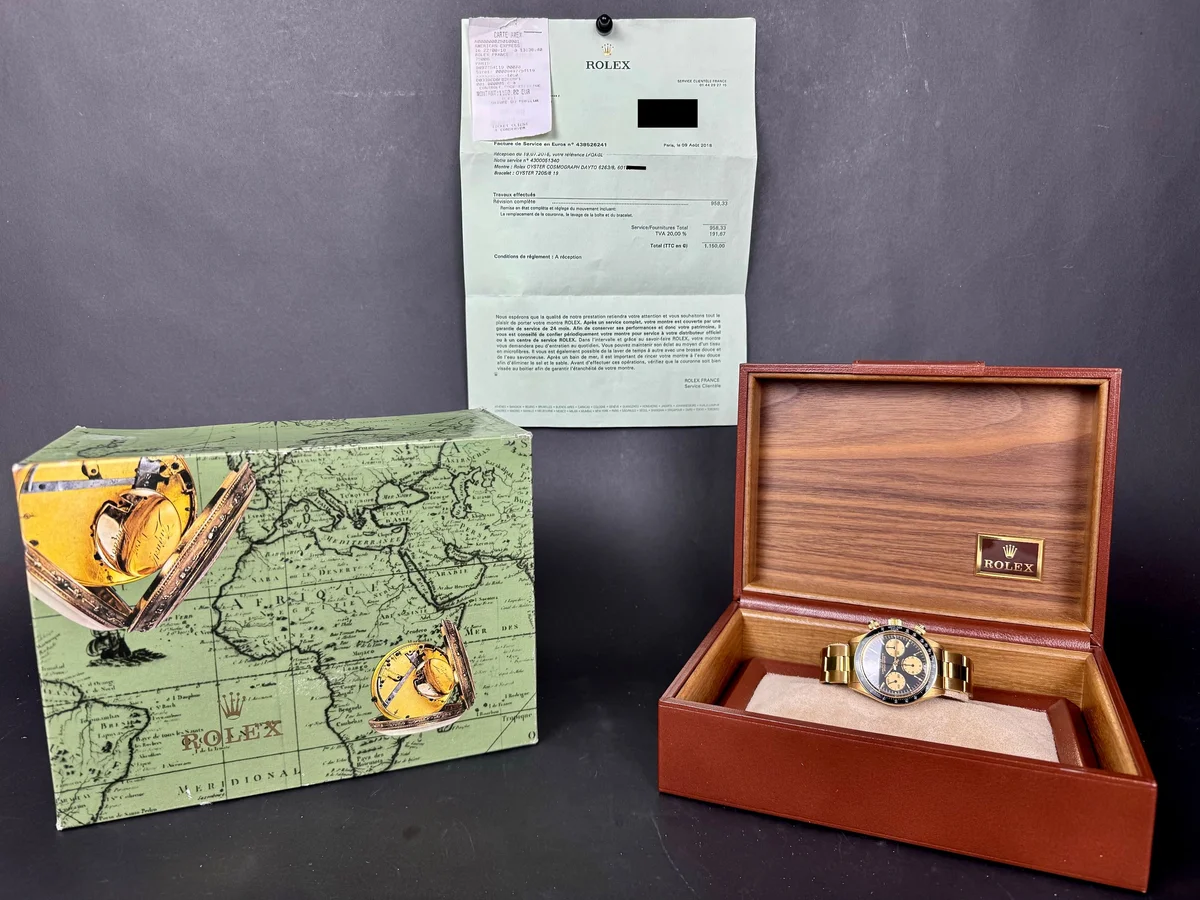 This example comes with its original Rolex box and a 2018 service invoice from Rolex France, attesting to its mechanical integrity.