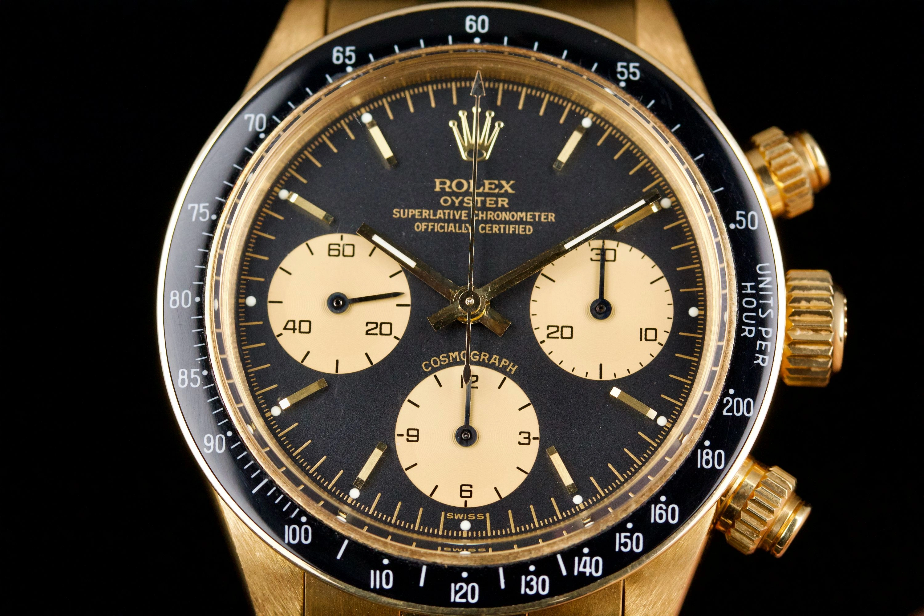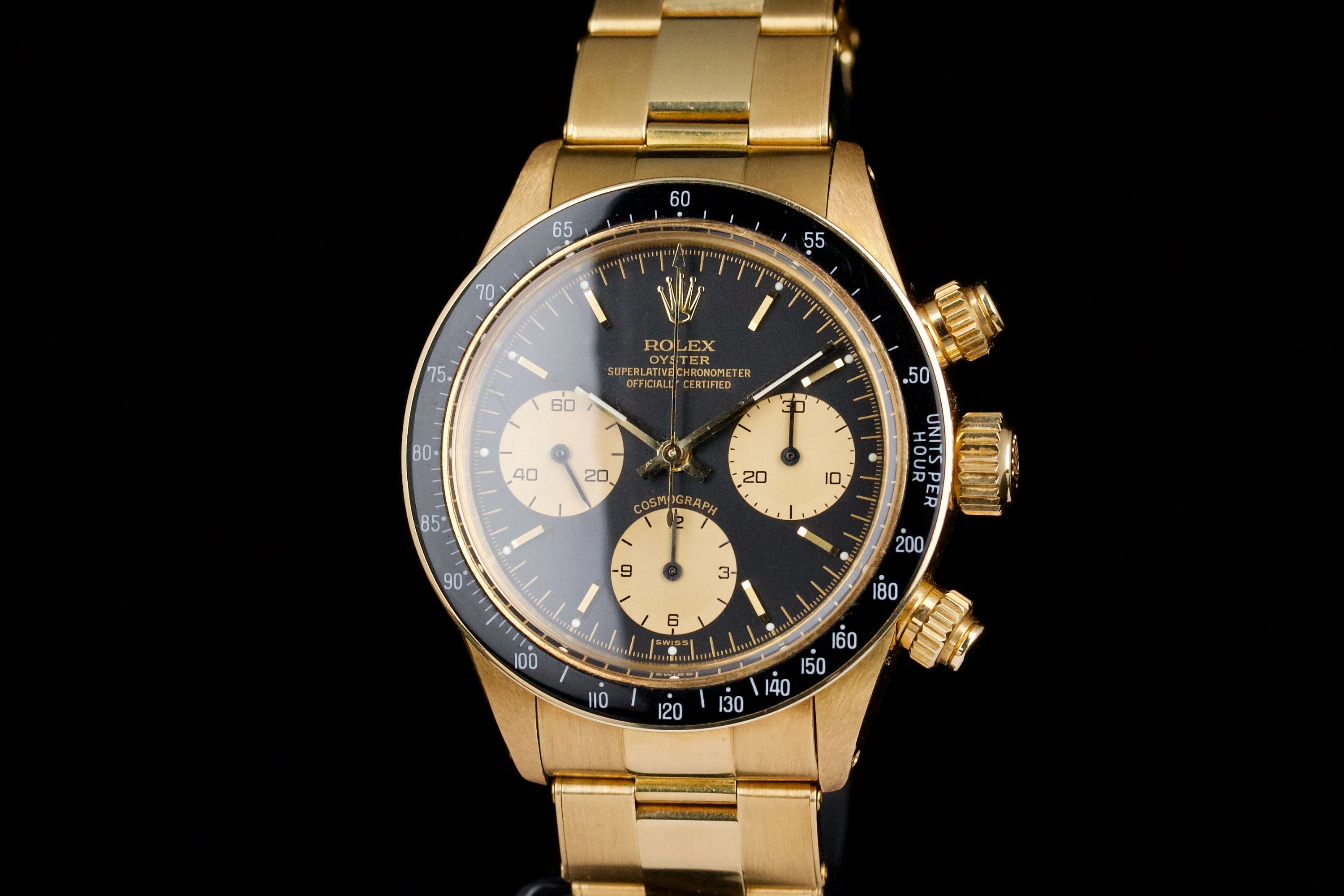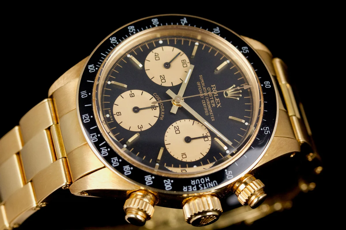 An icon among vintage chronographs, the Rolex Daytona 6263/8 in yellow gold blends sportiness with elegance in one of the most sought-after configurations of the manual-wind era.