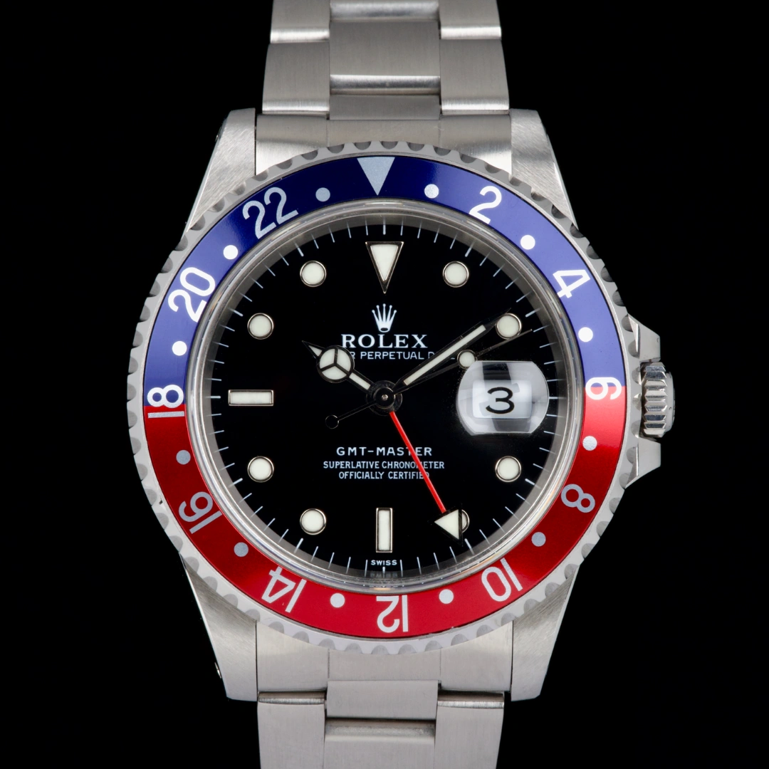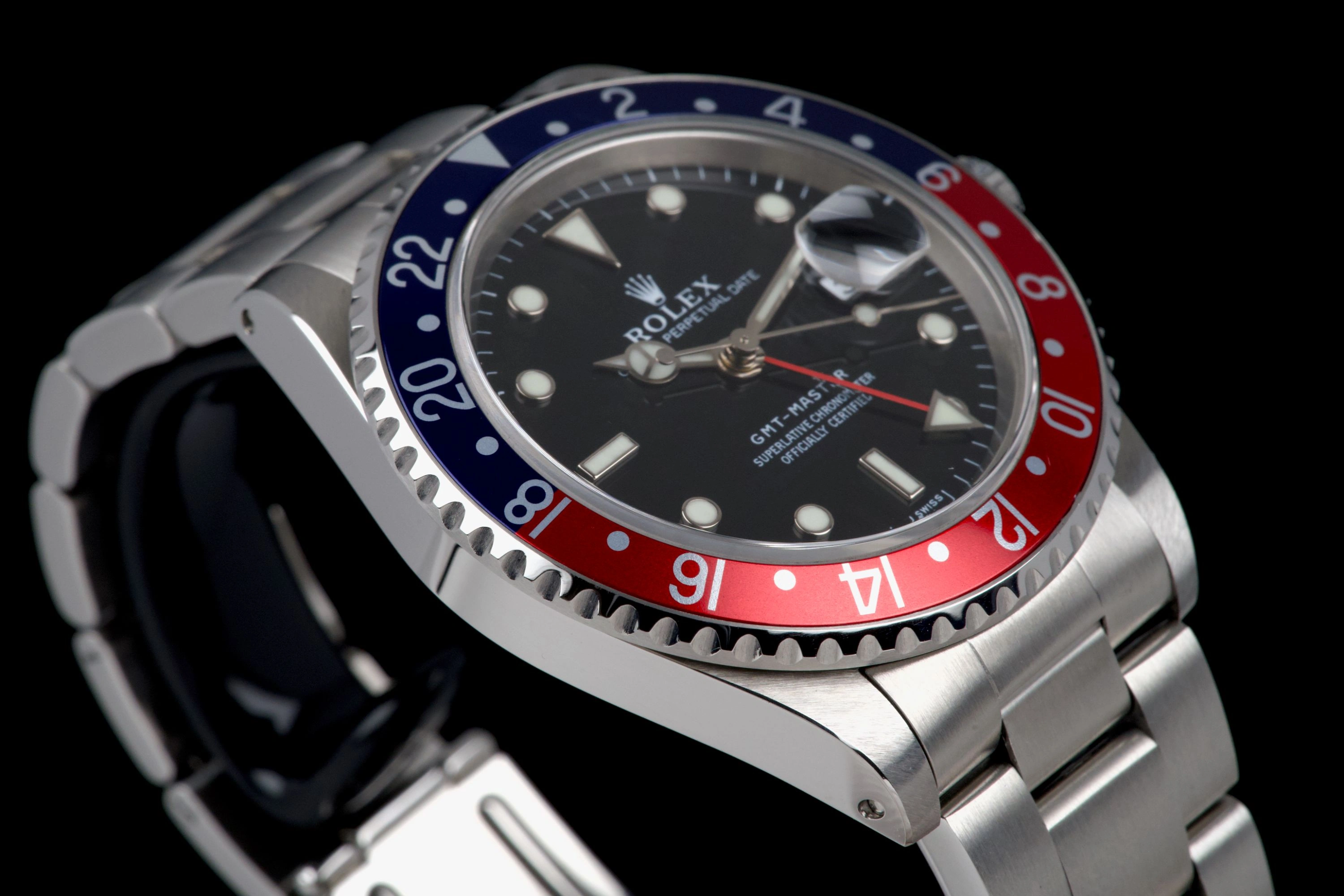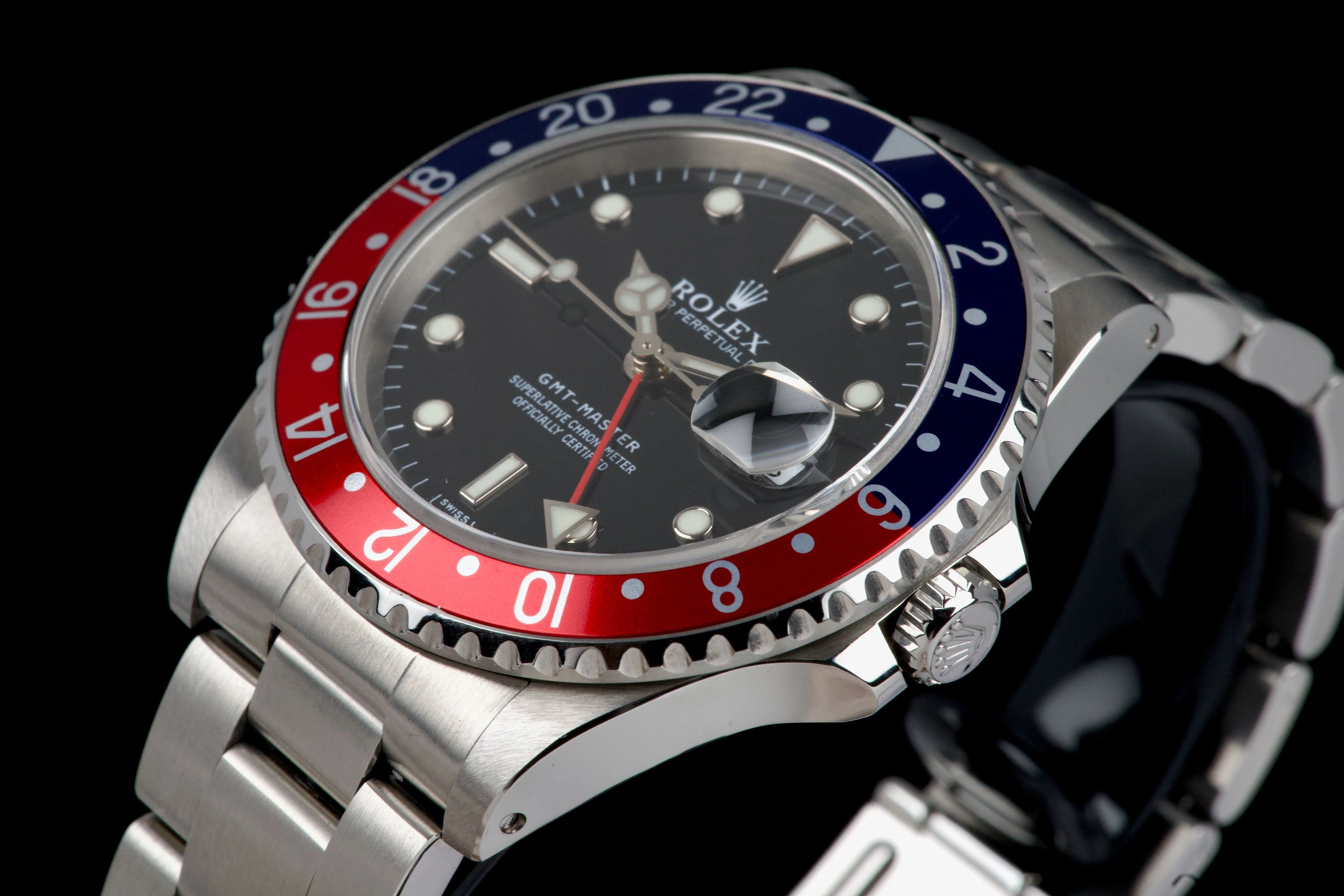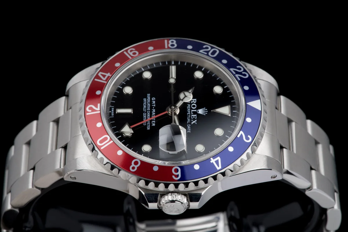 The Rolex GMT-Master 16700 was introduced in 1988. It was the last of the GMT-Master watches to have the fixed 24-hour hand; on the GMT-Master II's this hand could be adjusted separately. Nicknamed the Pepsi for its blue and red bezel.