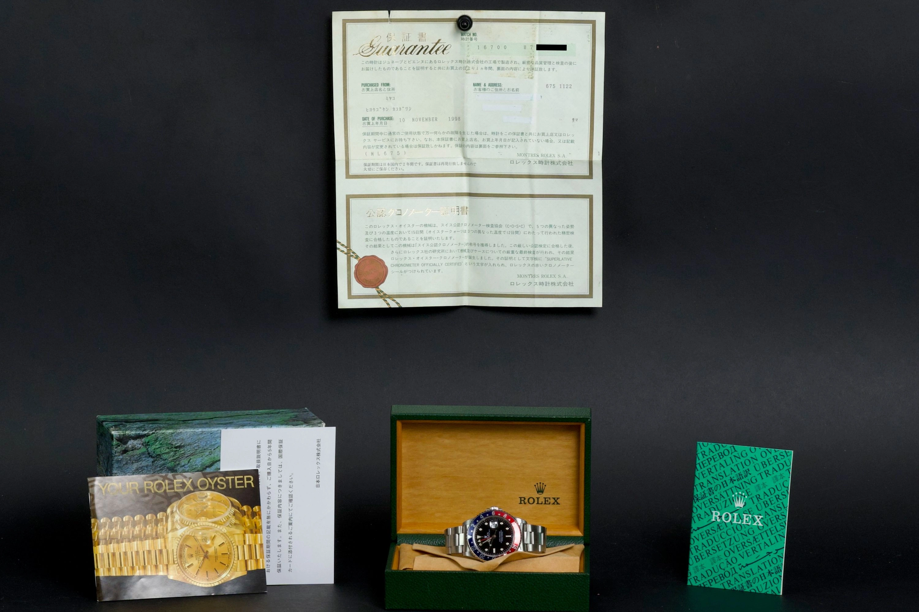 Rolex GMT-Master "Pepsi" Box and Papers 1998. Excellent case that has been professionally restored. Rare and desirable "Swiss Only" black Luminova dial in superb condition, with matching hands.