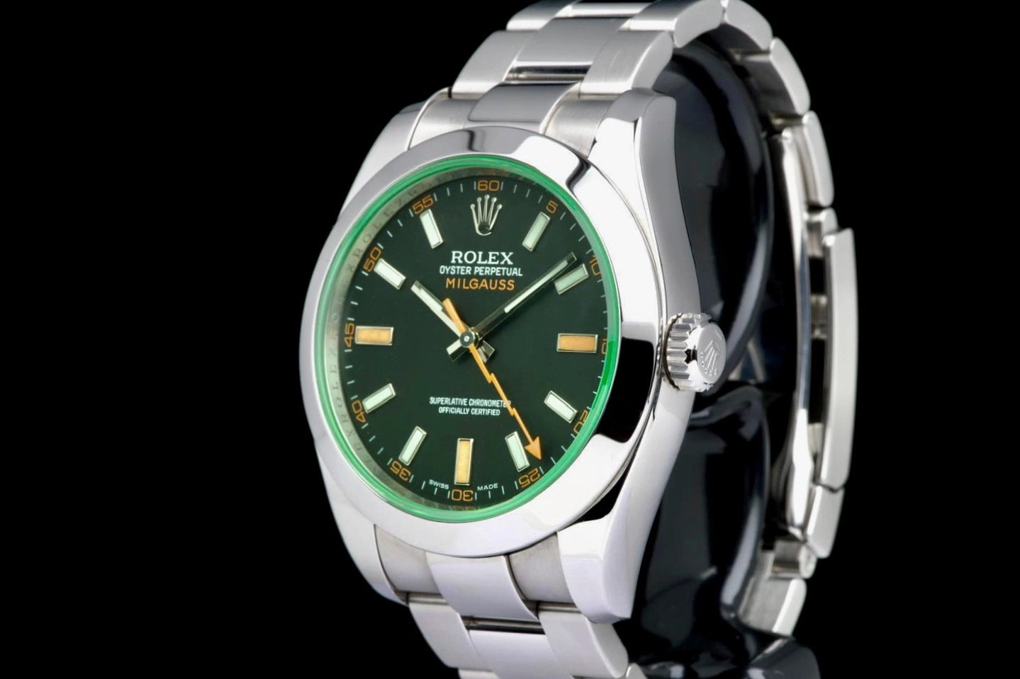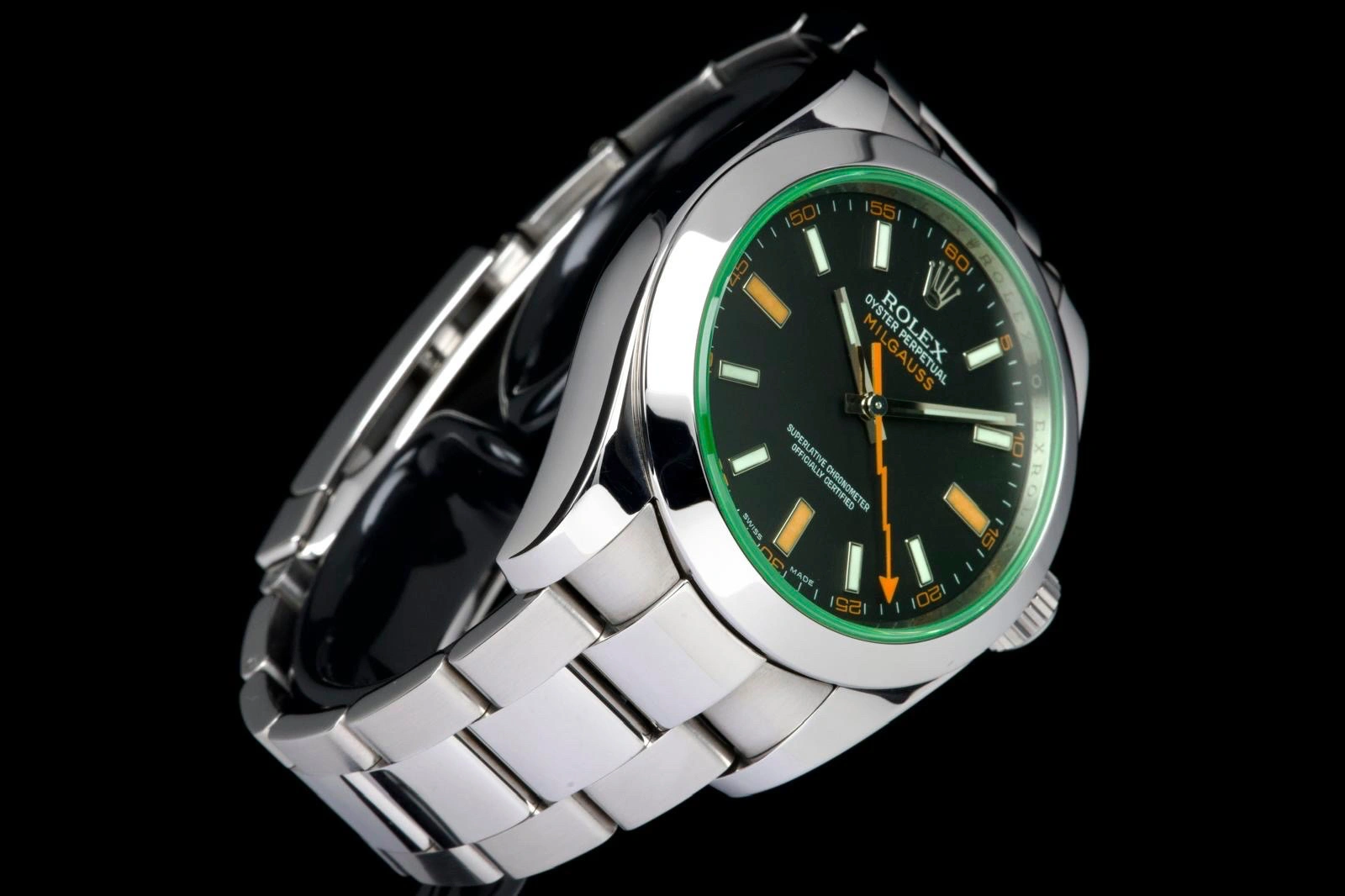 Presented is a distinguished example of one of Rolex’s most emblematic scientific timepieces: the Milgauss reference 116400GV.
