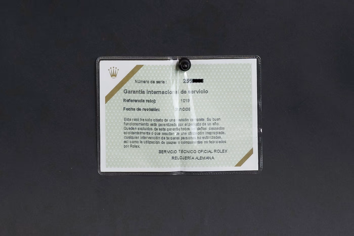 This example comes with a Rolex service card dated 1970, adding a notable element of period documentation.