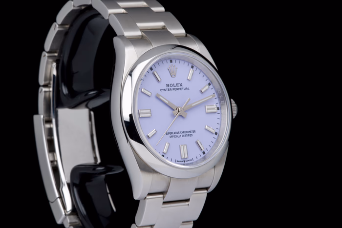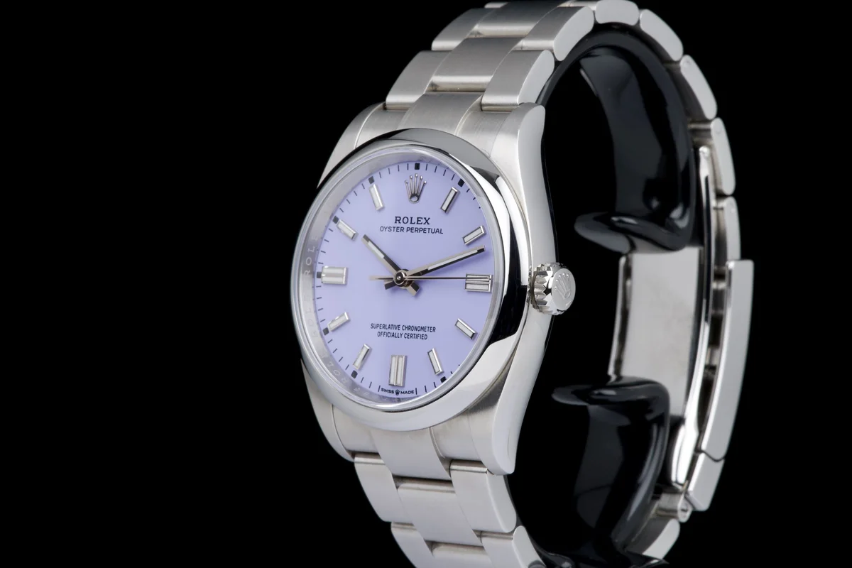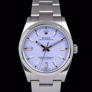 A stunning and unworn example of the brand-new 2025 Rolex Oyster Perpetual 36, featuring the elegant and playful lavender dial, one of the latest color introductions by Rolex.