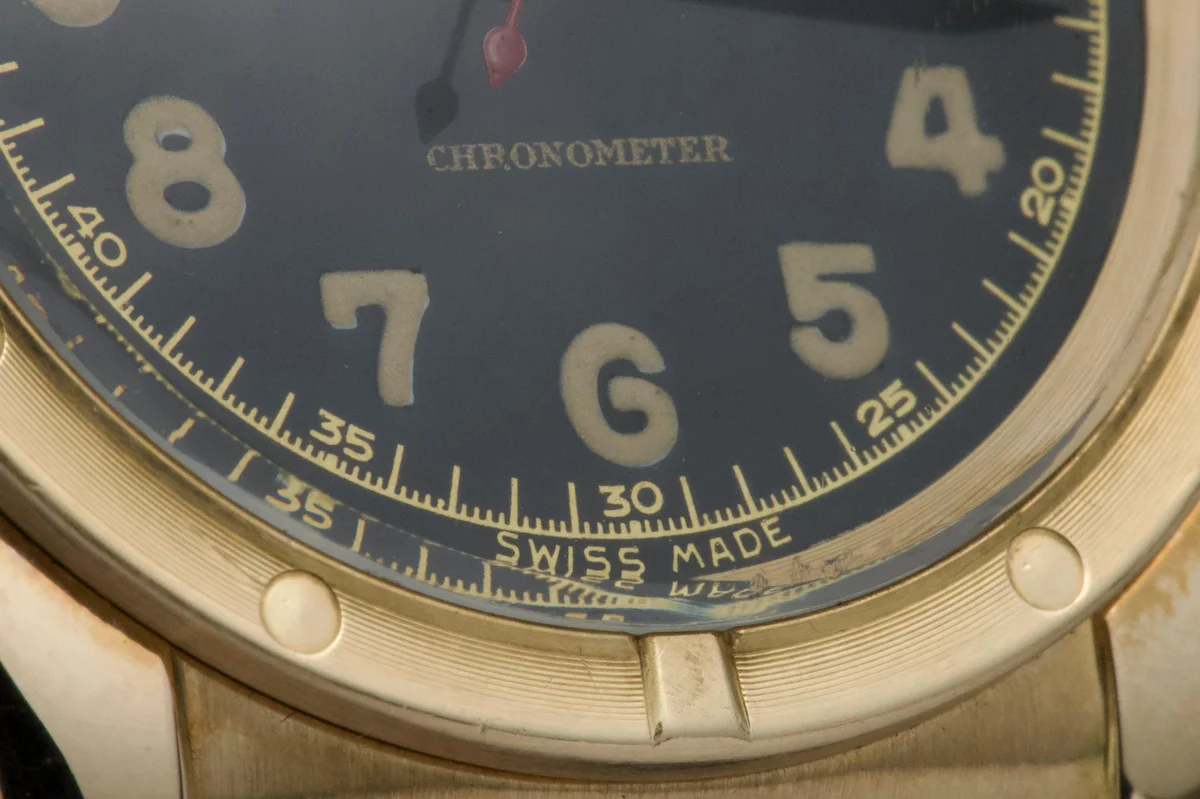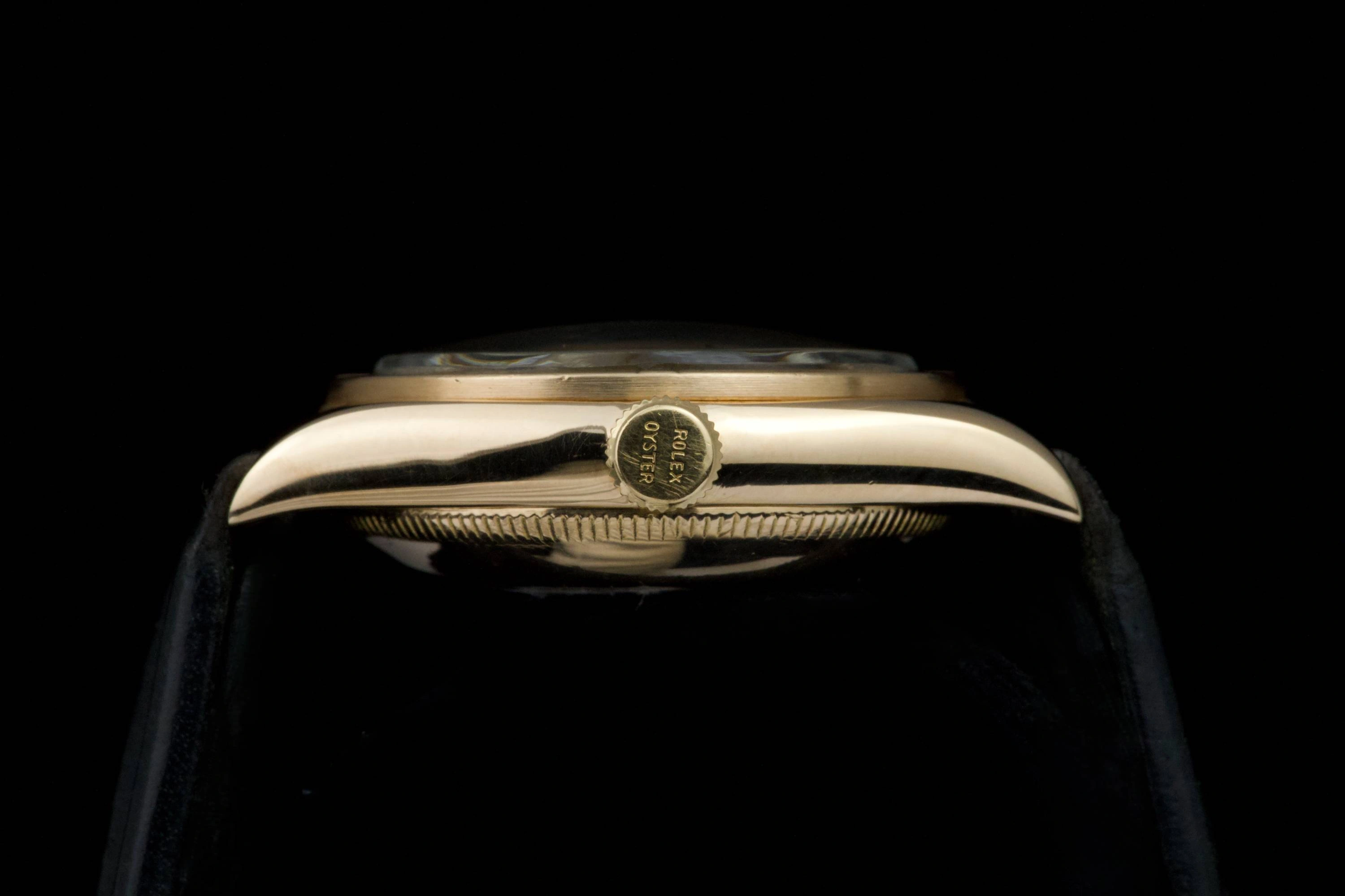 Rolex Oyster Perpetual Bubbleback Circa 1950s. 14K yellow gold case.