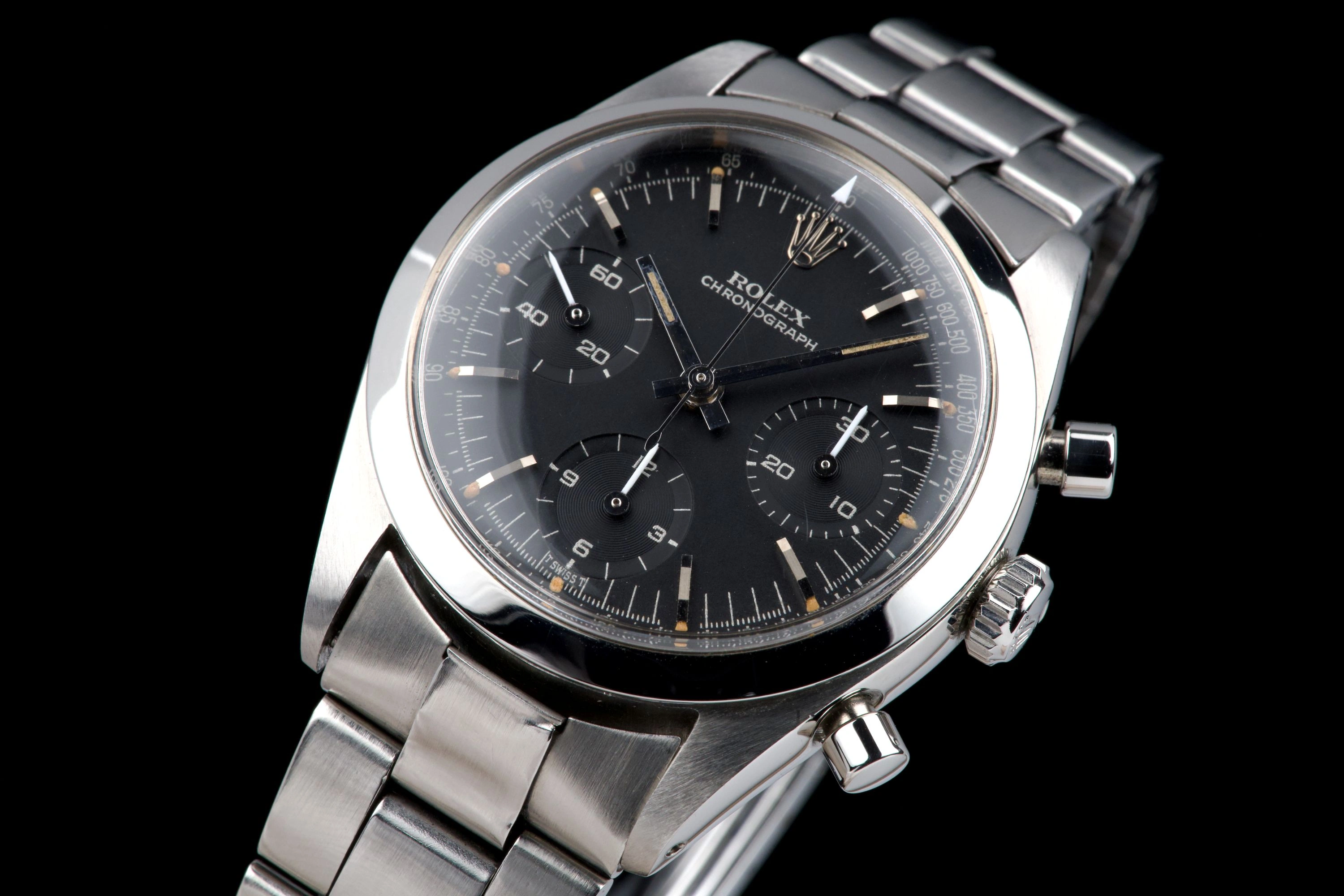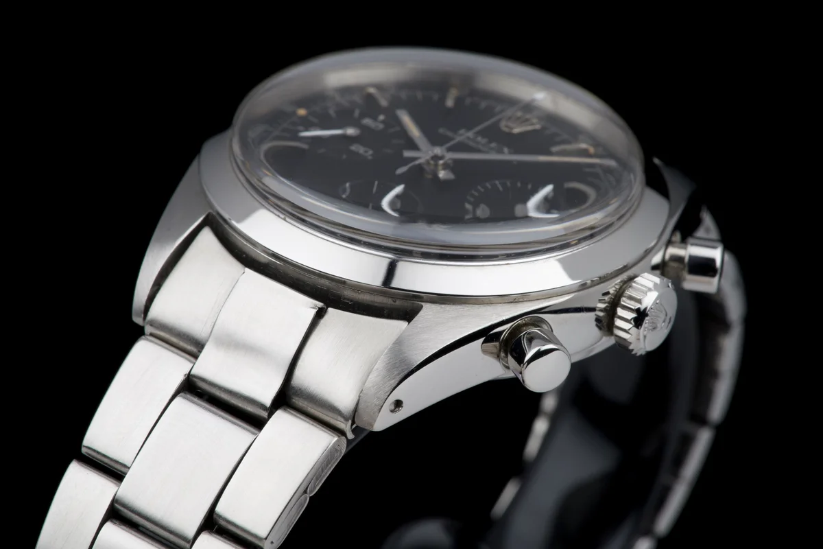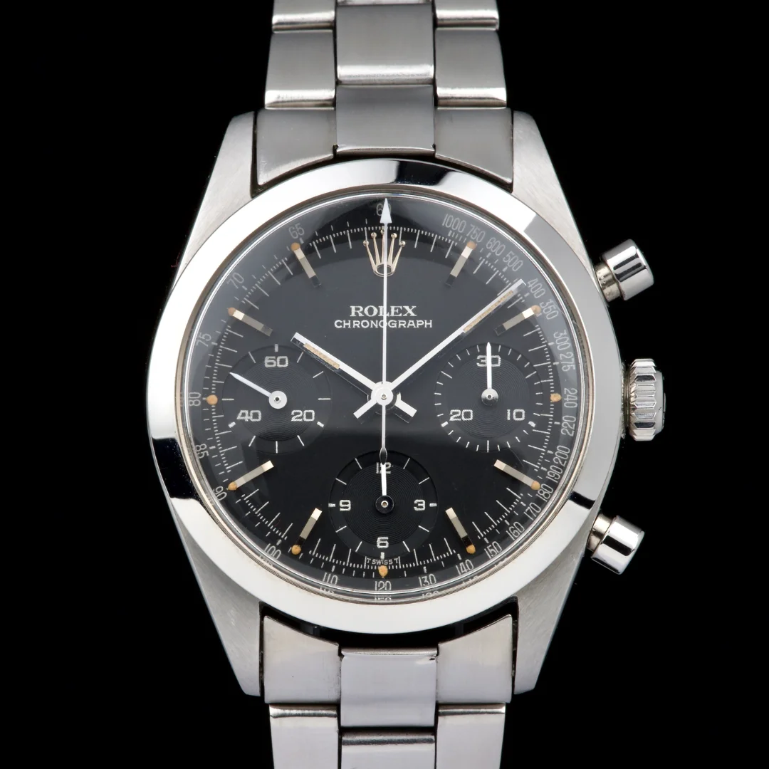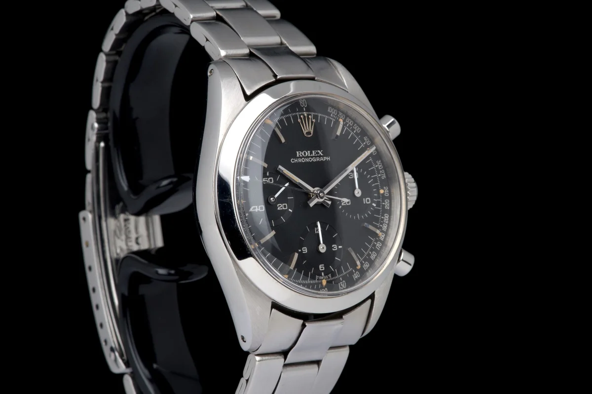 An outstanding example of the legendary Rolex Pre-Daytona reference 6238, fitted with a rare black matte dial with silver printing. This watch comes from an important French collector who owned it for the past 15 years.