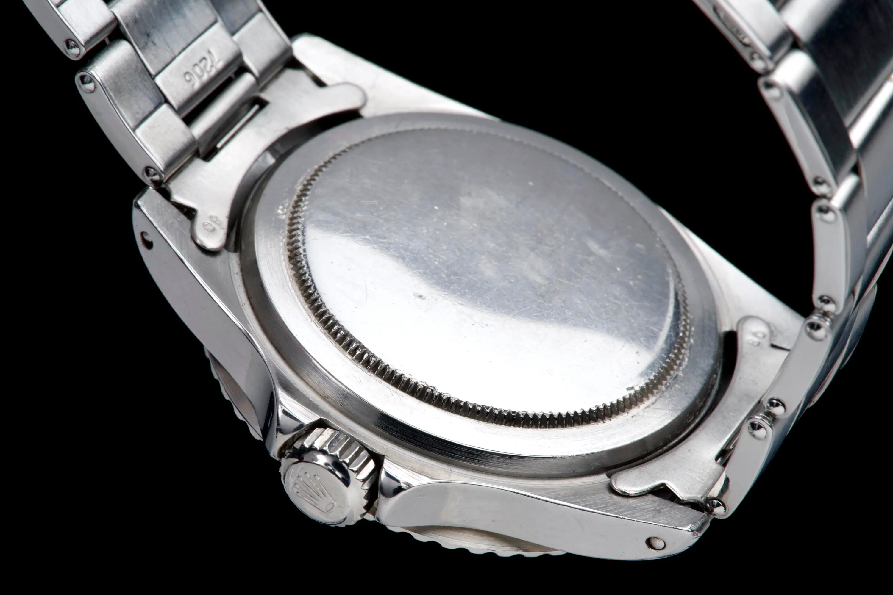 It comes fitted on a riveted Oyster bracelet reference 7206 with 80 endlinks