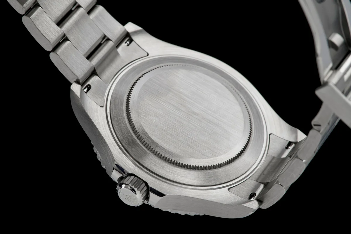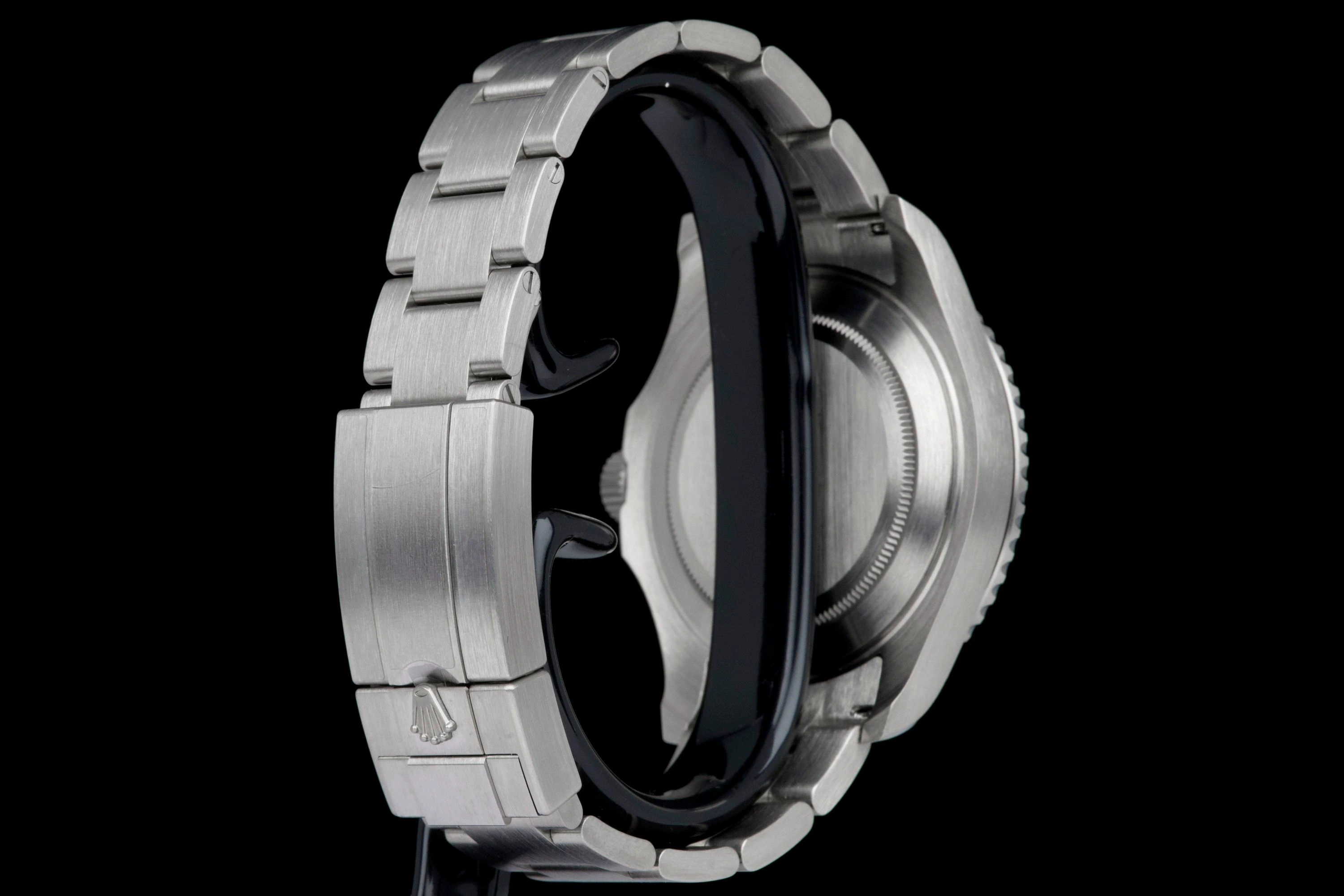 This particular example is offered in unworn condition, retaining its original factory finish, and is accompanied by its full set, including box, papers, and accessories.