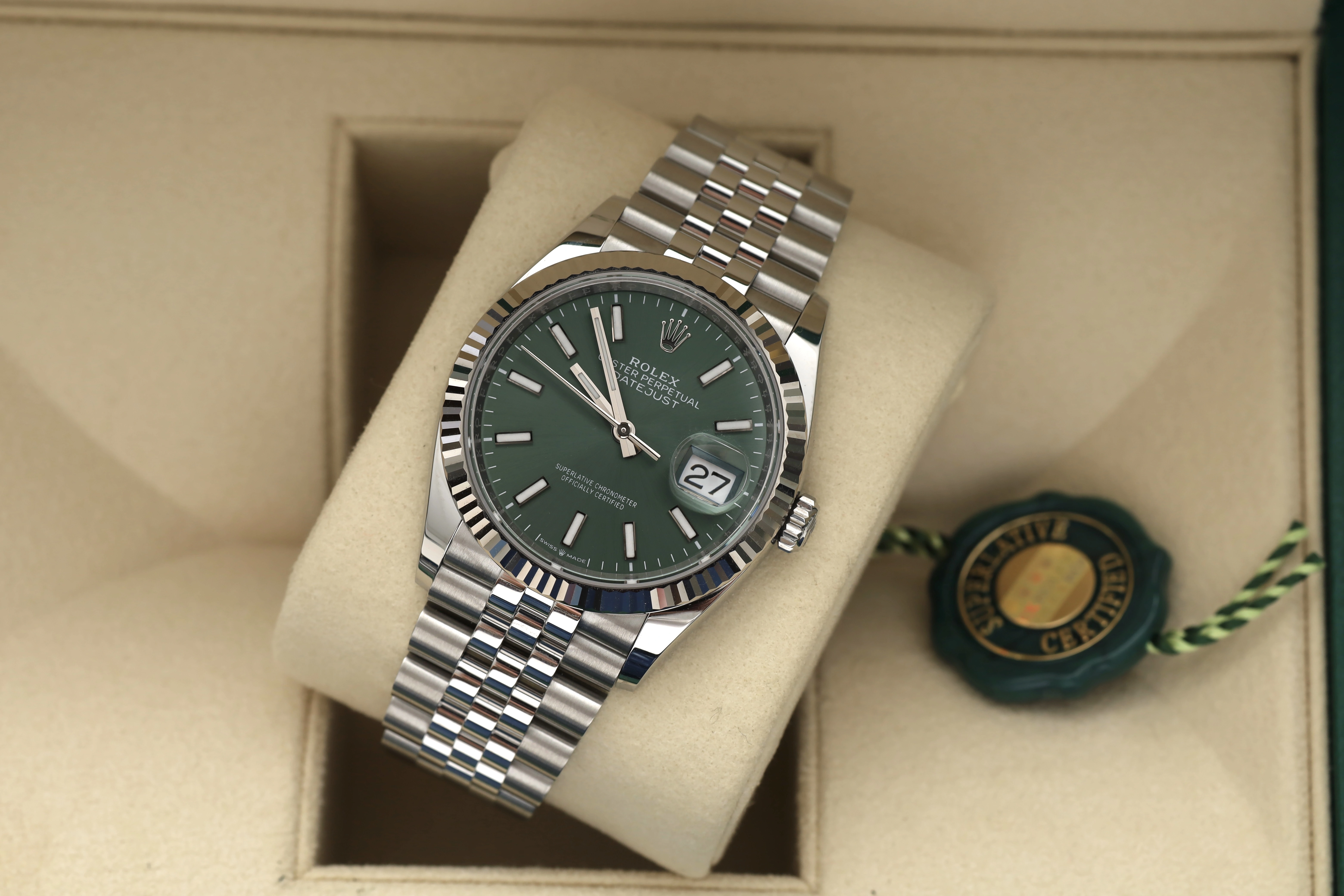 Rolex introduced a new generation of the Datejust 36 at BaselWorld 2018. It features a subtly resigned case paired with a new movement - caliber 3235. Per Rolex tradition, it was first offered in either steel & yellow gold or steel & 'Everose' rose gold, with the stainless steel variations such as the present watch following in 2019. Reference 126234-0051, powered by caliber 3235, has a stainless steel case of 36.00mm. It is crowned by a white gold, fluted bezel. This particular version has a Green dial, although many different options exist.