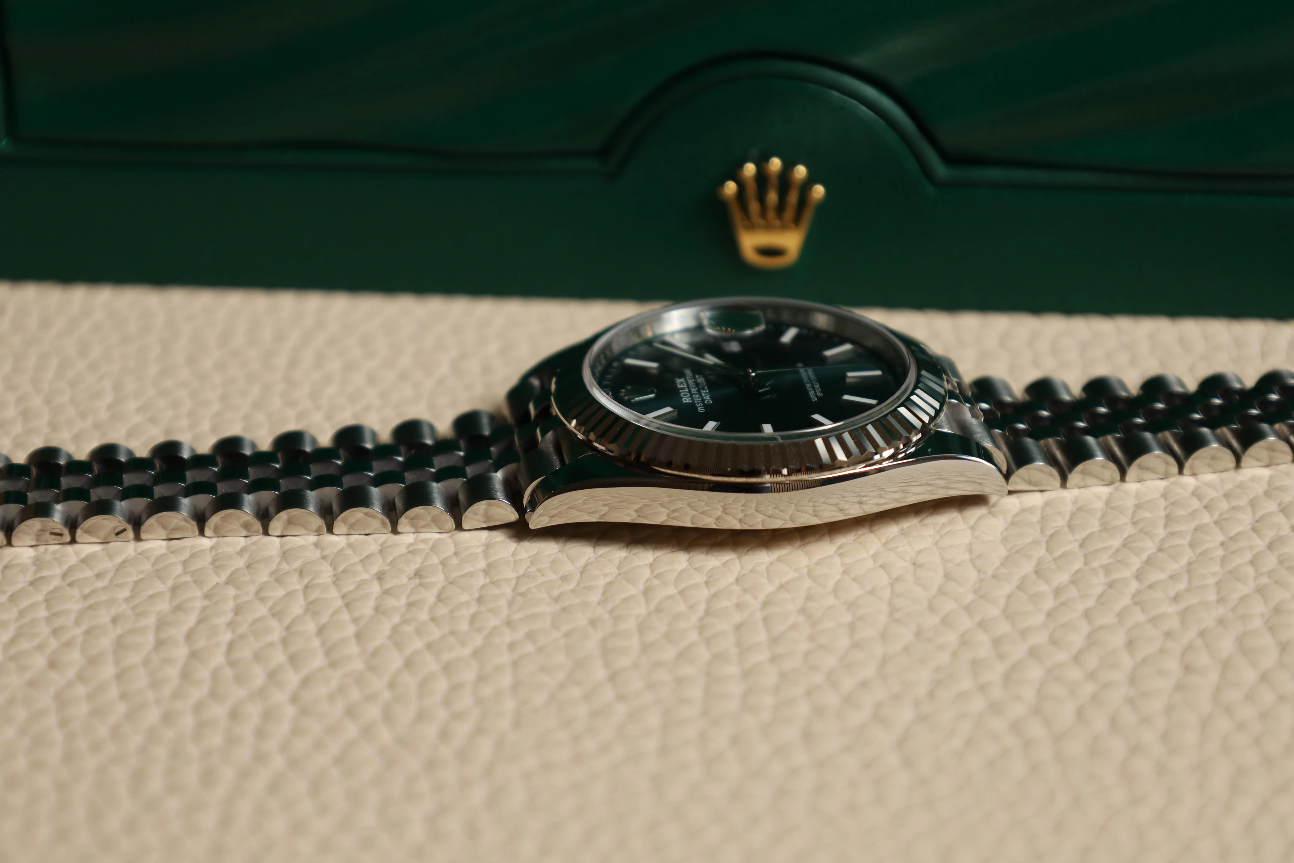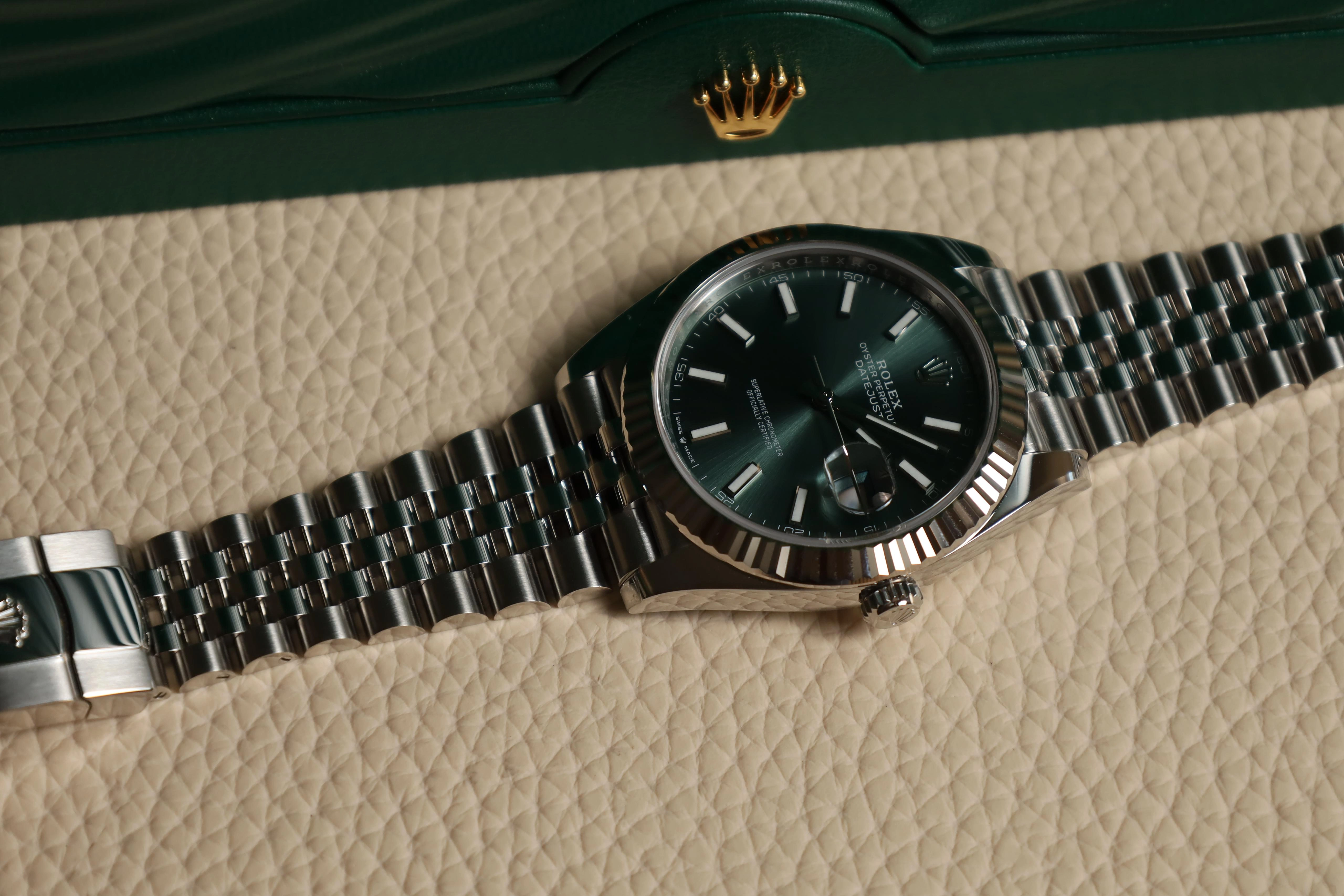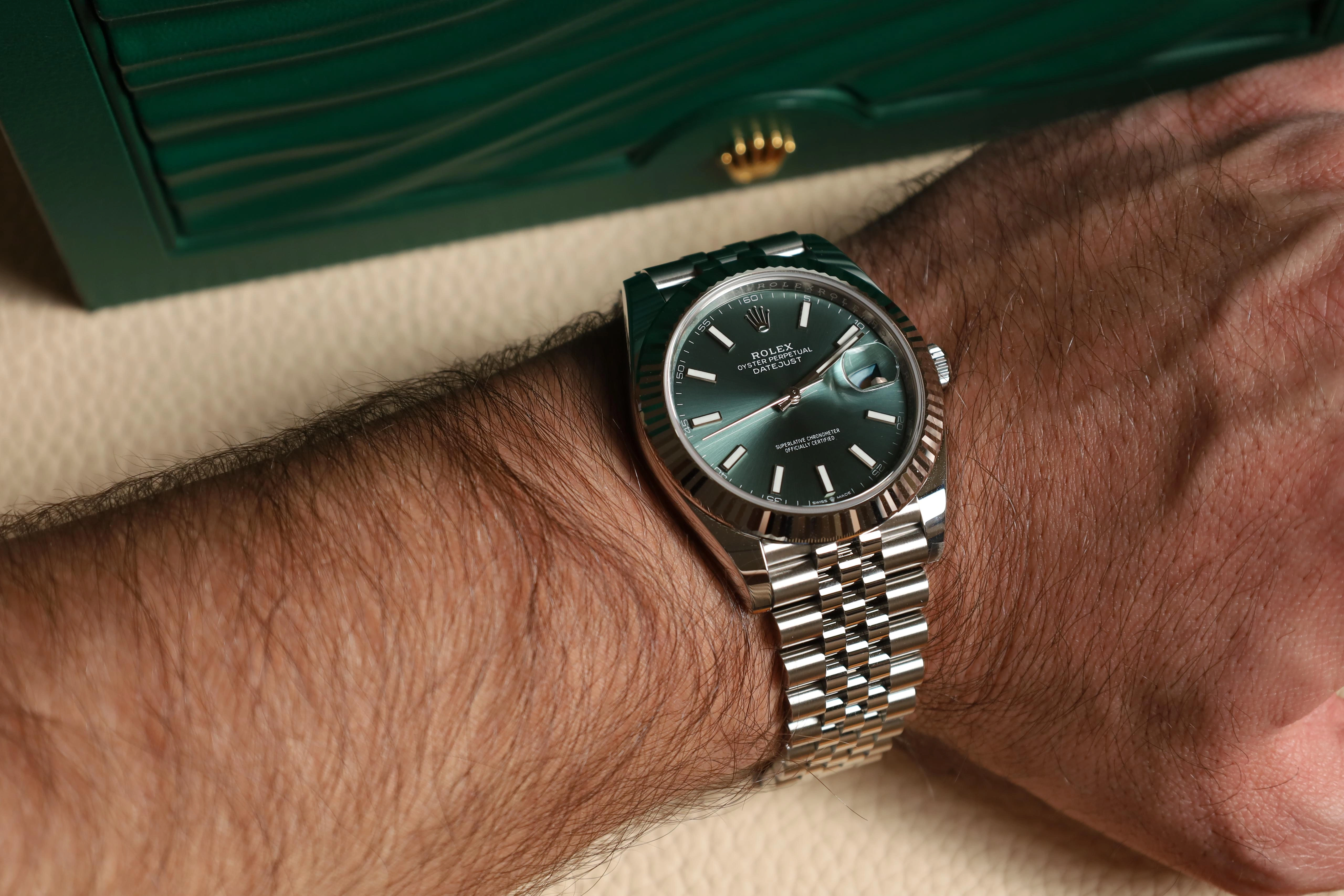 The Rolex Datejust 41 126334-0028 made its debut in 2022. This watch has a stainless steel case with white gold bezel, and a Green dial. Power is provided by the self-winding caliber 3235. Calibre 3235 is a new generation movement, entirely developed and manufactured by Rolex for a superlative level of performance.