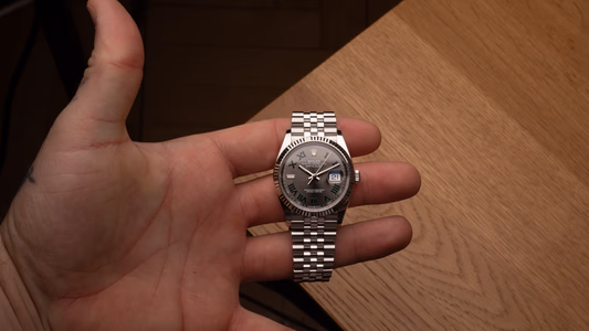 The Rolex Datejust 36 reference 126234-0045 was introduced in 2021. This Datejust has a stainless steel case with a fluted bezel in white gold, and a Grey dial. Inside ticks Rolex' self-winding caliber 3235.