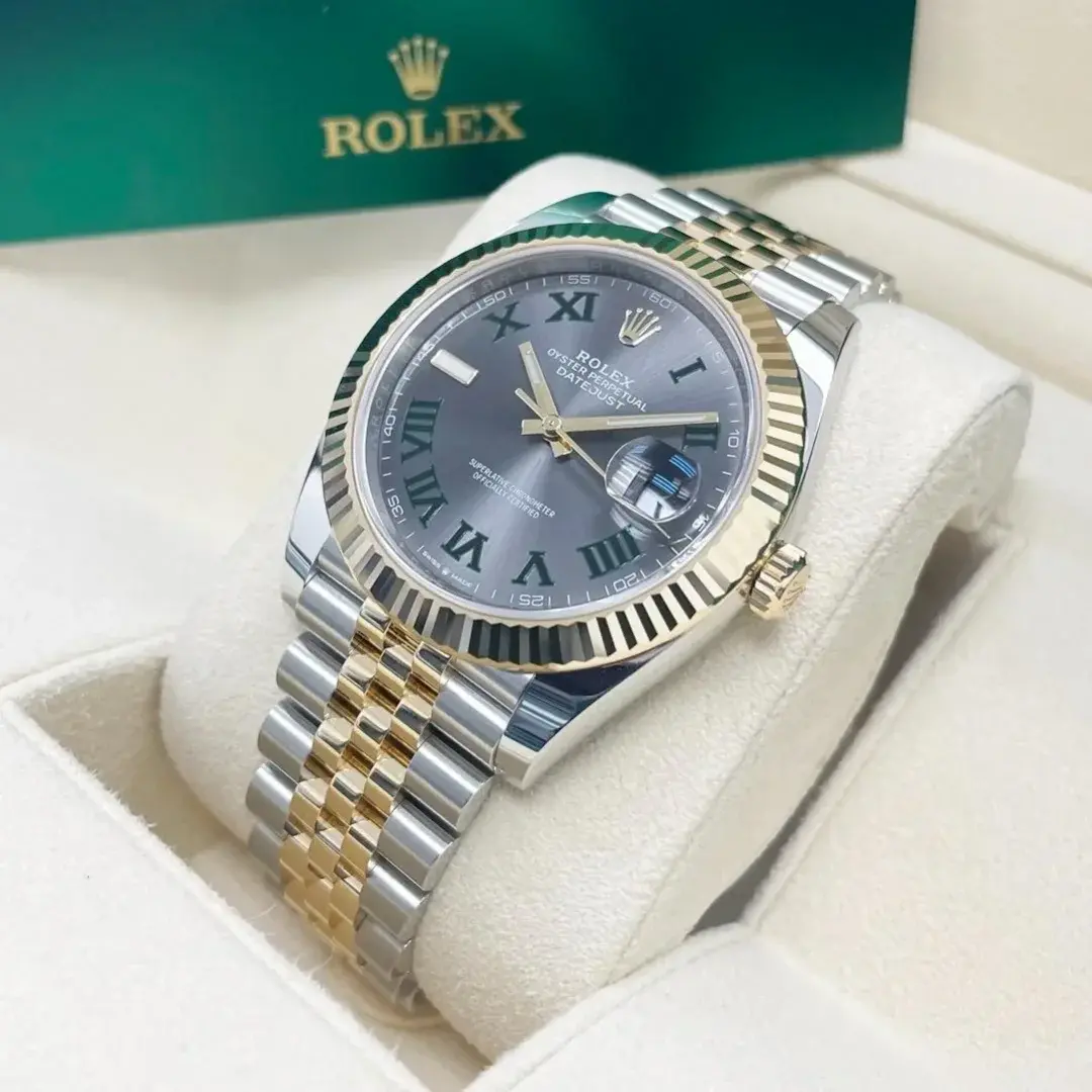 The Rolex Datejust 41 is an oversized variation of Rolex' iconic Datejust model, replacing the relatively short-lived Datejust II. It was introduced in 2016 for the Rolesor (two-tone) models, and 2017 for the stainless steel variations. As indicated in the name, the case measures 41mm across. It houses Rolex' caliber 3235 movement, which features a 70-hour power reserve and a Chronergy escapement. As customary with the Datejust family, the Datejust 41 is available in a range of configurations.