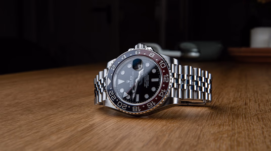 The Rolex GMT-Master 126710 was introduced at BaselWorld 2018. It features a Pepsi bezel insert in ceramic, a jubilee bracelet, and the new caliber 3285. Functions: Centre hour, minute and seconds hands. 24-hour display. Second time zone with independent rapid-setting of the hour hand. Instantaneous date. Stop-seconds for precise time setting. Bezel: Bidirectional rotatable 24-hour graduated bezel. Two-colour red and blue Cerachrom insert in ceramic, moulded numerals and graduations, Clasp: Folding Oysterlock safety clasp with Easylink 5 mm comfort extension link