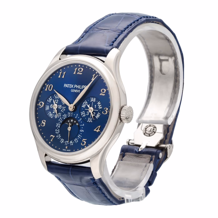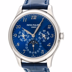 The Patek Philippe Perpetual Calendar Ref. 5327G-001 was introduced at BaselWorld 2016 in white, yellow, and rose gold. It features a case of 39mm - somewhat larger than for example the 37.2mm of the 5140. All three initial models feature Breguet-style numerals and feuille hands.