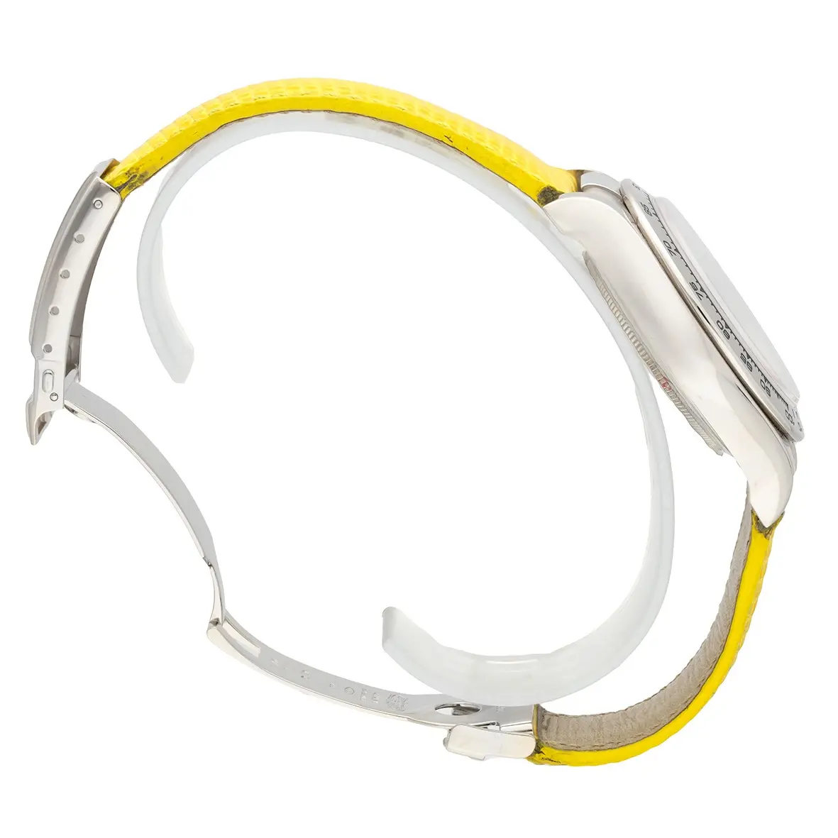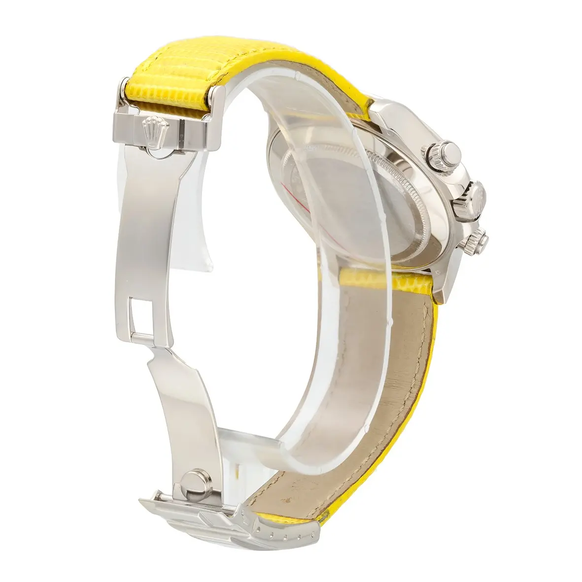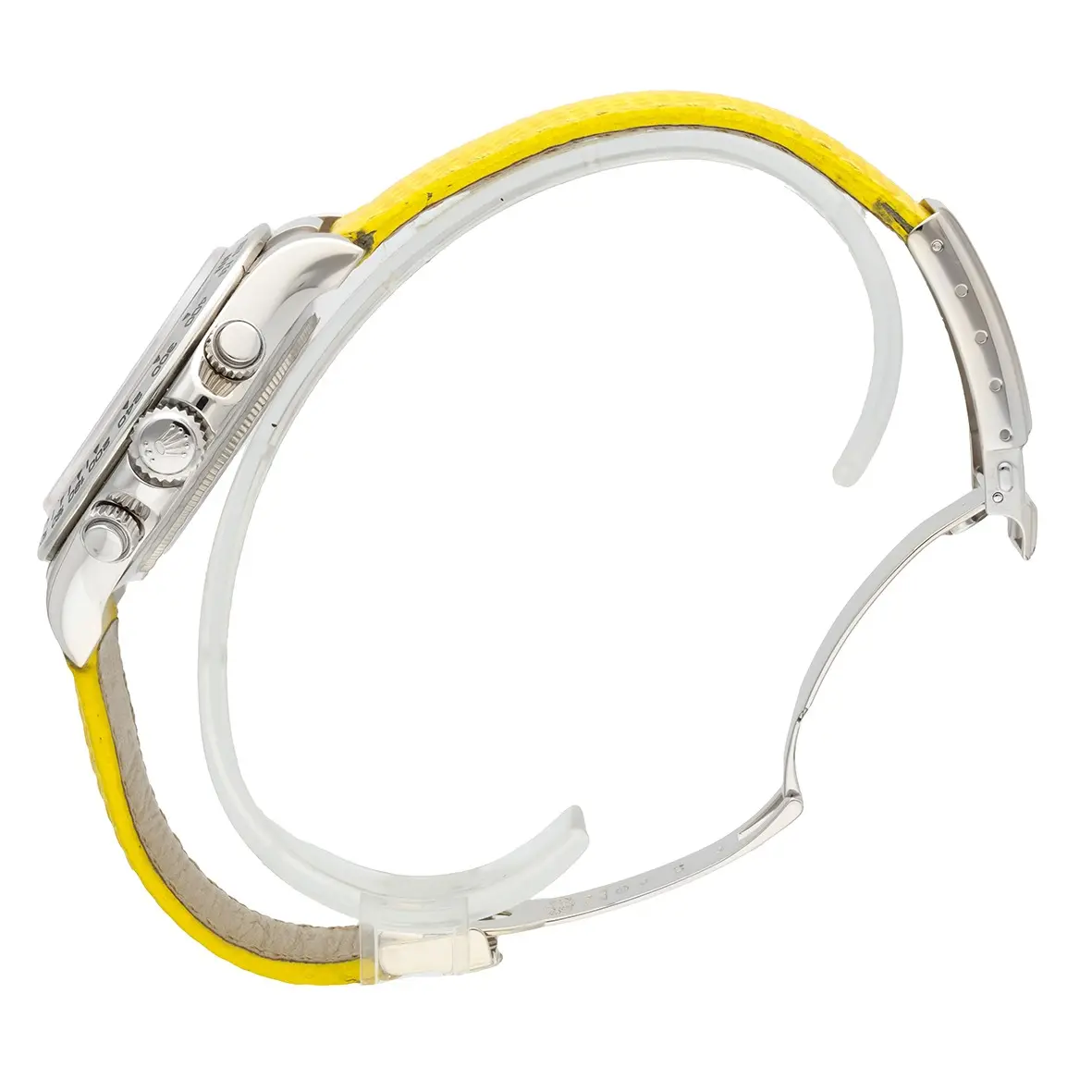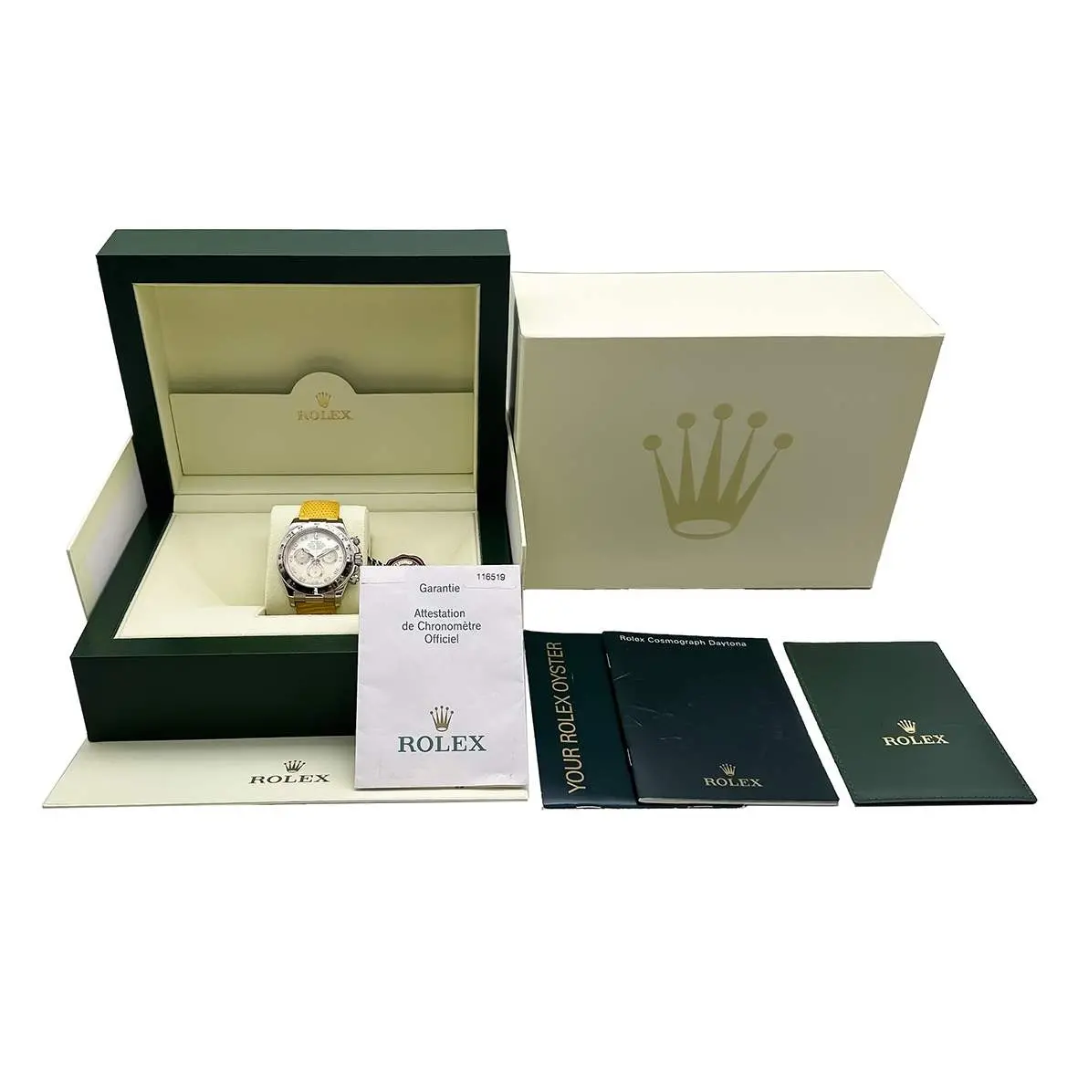 With its state-of-the-art technology, evocative heritage and sporting aura, the Oyster Perpetual Cosmograph Daytona swiftly became an iconic watch. Its dial carries in red letters the name “Daytona” – the most famous motor racing circuit in the United States. Available in 904 L steel, 18 ct gold and Rolesor versions with a variety of dials, robust Oyster bracelets as well as elegant leather straps both equipped with high security Oysterlock clasps, the Cosmograph Daytona is tailored for the track and the concert hall. The reference 116519 comes with various dial colors and materials.
