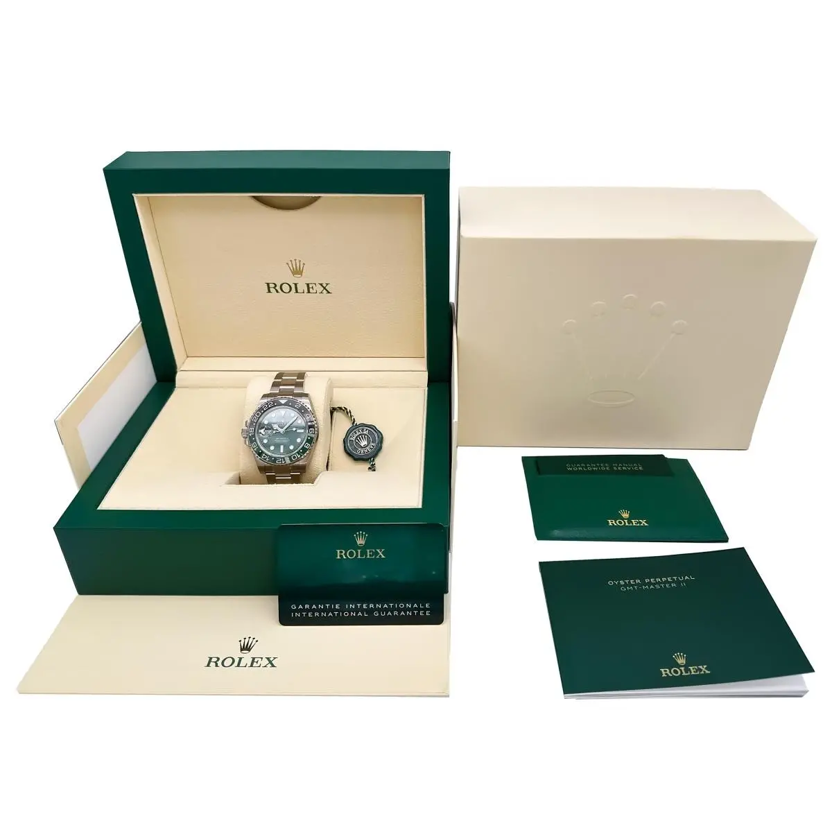 Rolex GMT-Master 2 Ref. 126729VTNR-0001 was introduced in 2025 as a distinctive addition to the GMT-Master II collection, notable for its use of ceramic beyond the bezel. The watch is housed in a 40 mm Oyster case crafted from 18 ct white gold, constructed according to Rolex’s monobloc architecture with a screw-down case back and Triplock winding crown. Water resistance is rated to 100 meters. The watch is fitted with a three-piece link Oyster bracelet in 18 ct white gold, secured by an Oysterlock folding safety clasp with an Easylink comfort extension allowing approximately 5 mm of adjustment.