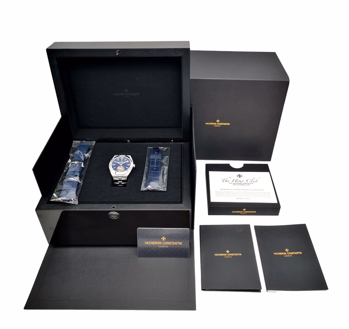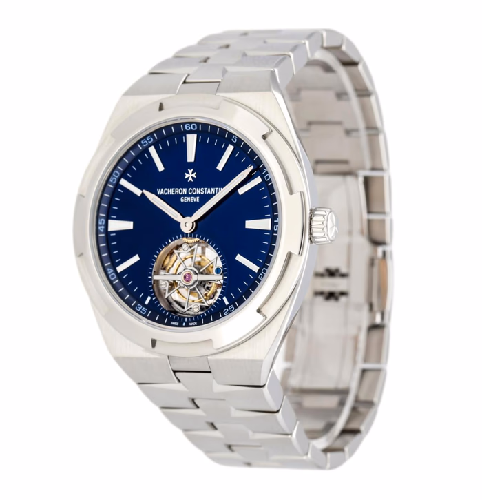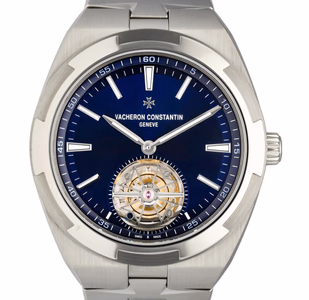 Introduced in 2019, the Vacheron Constantin Overseas 6000V/110A-B544 has a stainless steel case of 42.5mm which houses the self-winding caliber 2160 with tourbillon. The dial is blue. It comes with a stainless steel bracelet and two straps.
