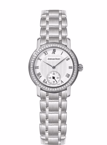 The Audemars Piguet Jules Audemars ref. 79387BC.ZZ.1229BC.01 has a White Gold case with a diameter of 27.00mm and a Silver dial. This watch is powered by the hand-wound caliber AP 3090.
