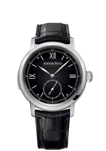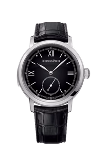 The Audemars Piguet Jules Audemars 26590PT.OO.D002CR.01 was introduced at SIHH 2016. Its movement and case construction together form a 'Supersonnerie' construction, enhancing the sound of the minute repeater. For this reference, the case is done in platinum and paired with a black enamel dial.