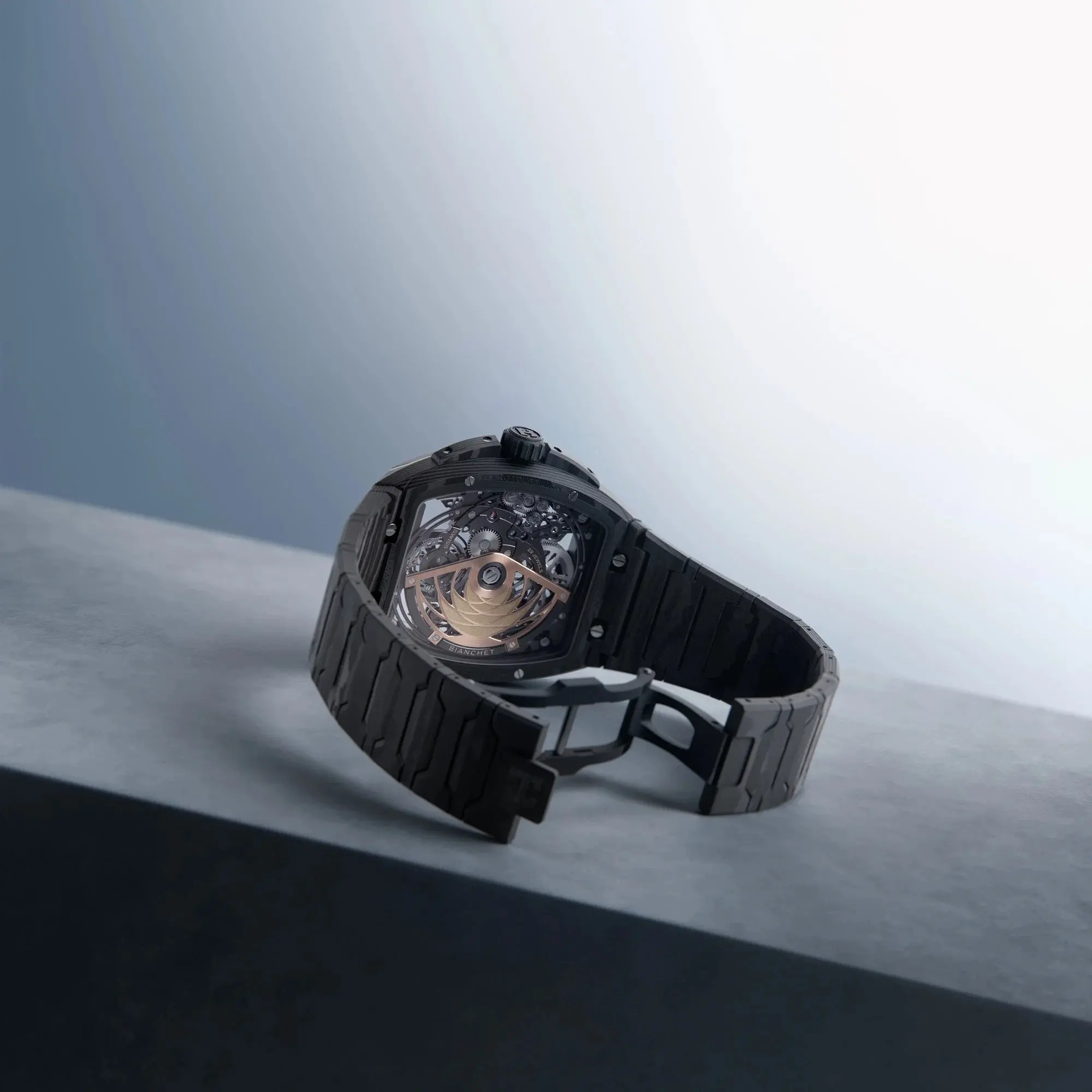 The Bianchet Tonneau Ultrafino Carbon Ref. UFFTSKCBSB is a 40 mm automatic flying tourbillon, shaped to follow the natural contour of the wrist. Ultralight and fully scratch-resistant, it delivers exceptional comfort and uncompromised performance. Shock resistance 5000Gs. Additional rubber strap.