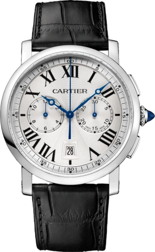 With its round case with straight lugs, the Rotonde de Cartier is one of Cartier's more traditional designs. This collection consists primarily of watches with added complications. The Rotonde Chronograph was introduced in 2015. It is powered by Cartier's in-house caliber 1904-CH. Reference WSRO0002 has a stainless steel case and a silver dial.