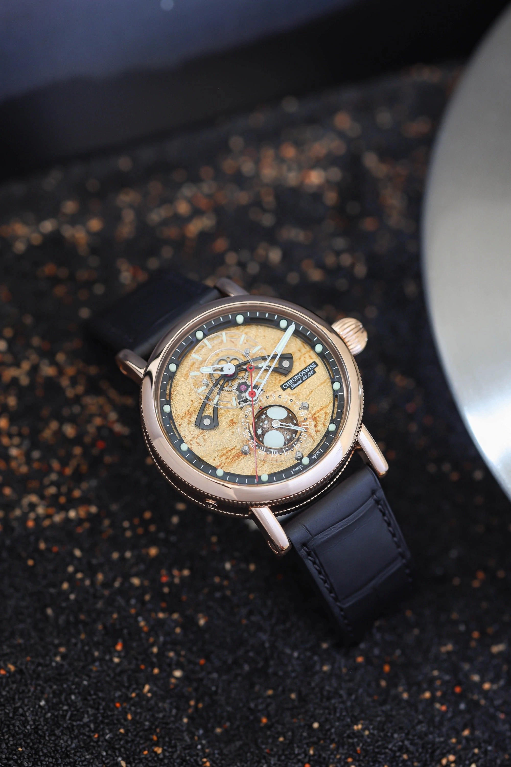 Established in 1983, in the midst of the quartz crisis when only visionaries continued to believe in the mechanical watch, Chronoswiss has grown into an exclusive, high-end brand with a nonconformist approach that is firmly anchored in both German and Swiss watchmaking history. Entrepreneurial spirit and congenial inventions such as the sapphire glass back encasing the movement, an unmistakable design and the innovative interpretation of the regulator complication made Chronoswiss unique and very successful. Today, the Lucerne-based company still is an independent, family-owned brand and creator of modern mechanical watches. It utilises a mix of the newest technologies and classic artisanal handcrafting such as handmade guilloché, skeletonising and enamelling to create timeless, yet distinctively contemporary horology with nonconformist designs.