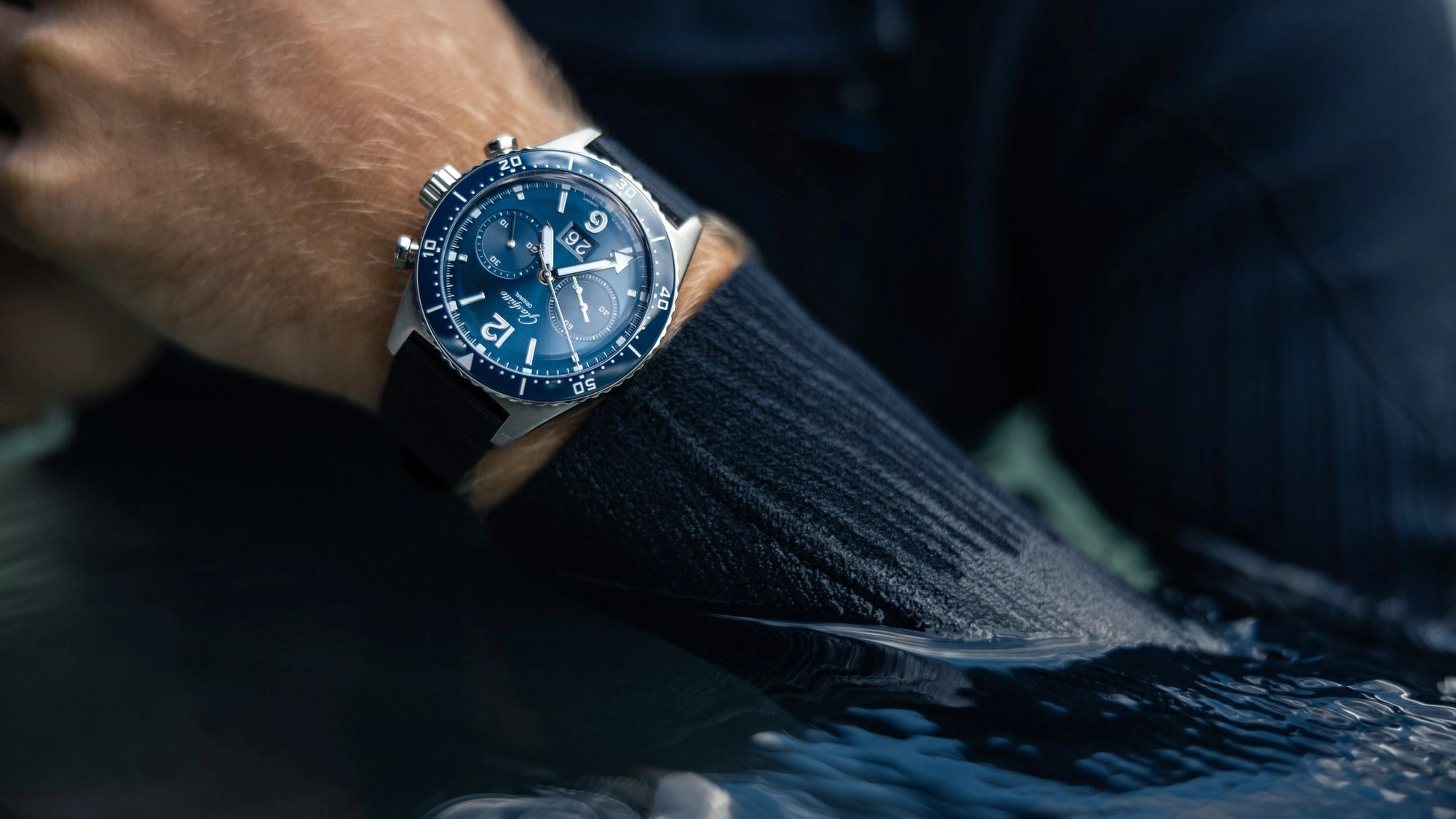 The Glashuette Original SeaQ Chronograph 1-37-23-02-81-36 debuted in 2022. This SeaQ has a stainless steel case of 43.20mm, which houses a self-winding movement with big date and chronograph. The dial is Blue.