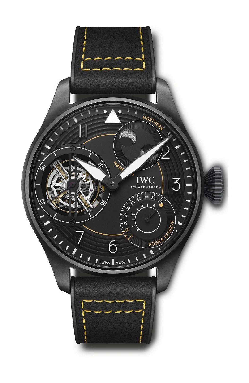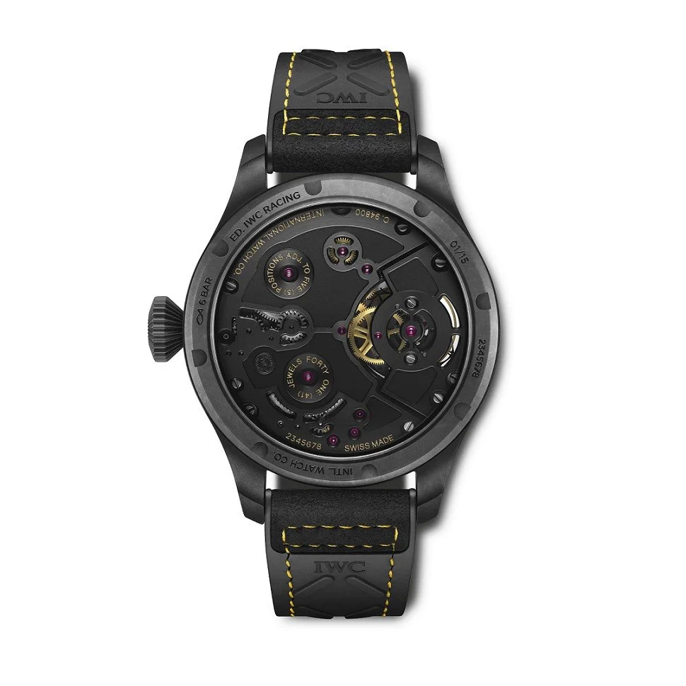 The IWC Big Pilot Constant-Force Tourbillon IWC Racing reference IW5905-01 is a limited edition of 15 pieces introduced in 2020. This Big Pilot has a matte black case in 'Ceratanium', and a blacked-out version of the caliber 94800 movement.