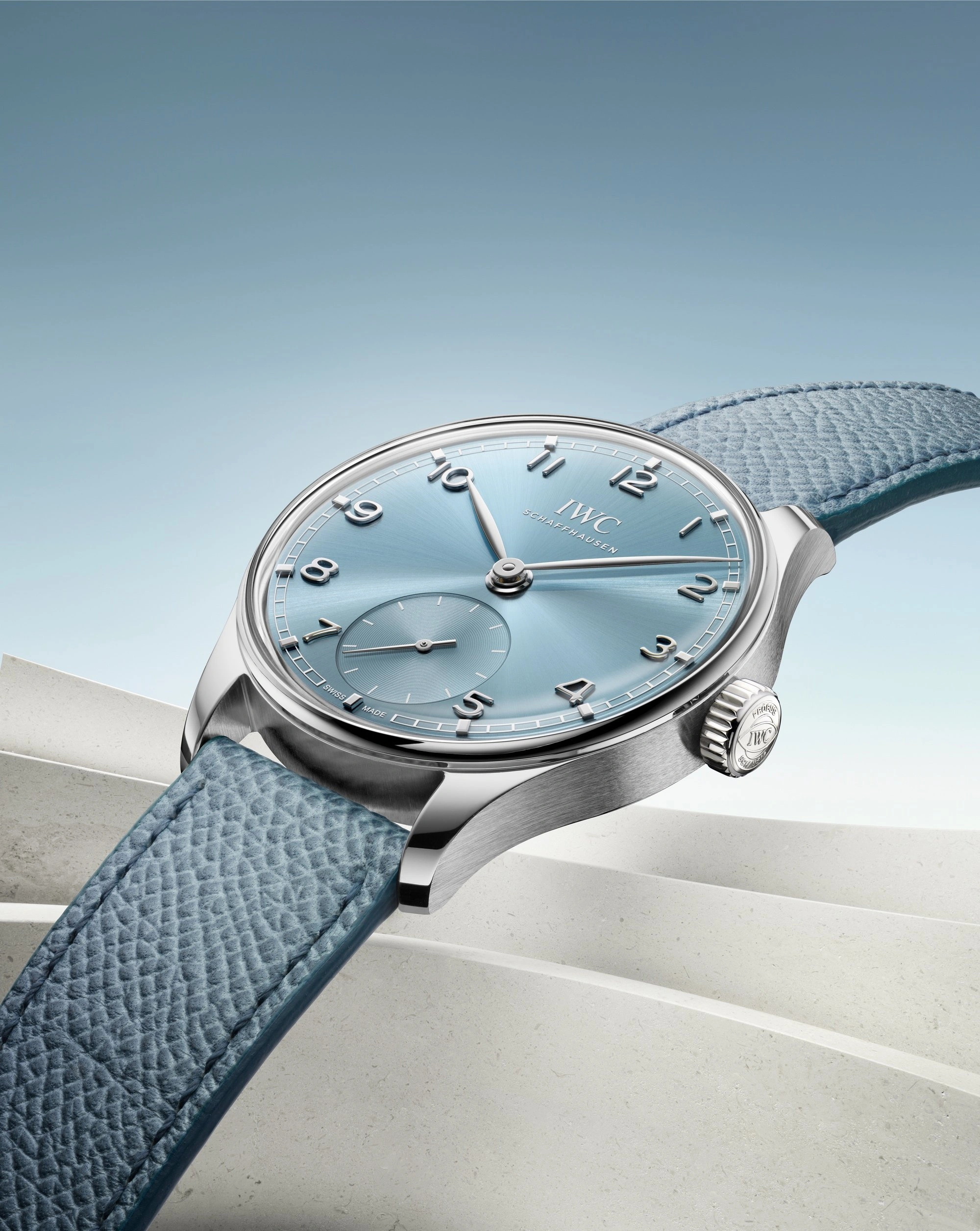 The IWC Portugieser Automatic 40 IW358402 . This watch has a White Gold case and a Blue dial. It is powered by caliber 82200, a self-winding movement with small seconds.