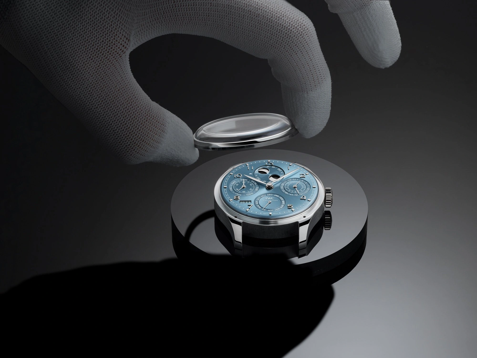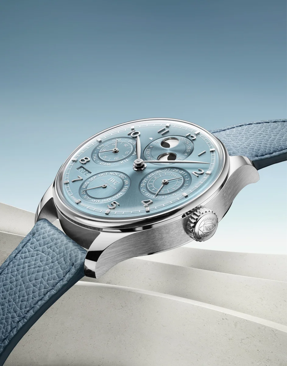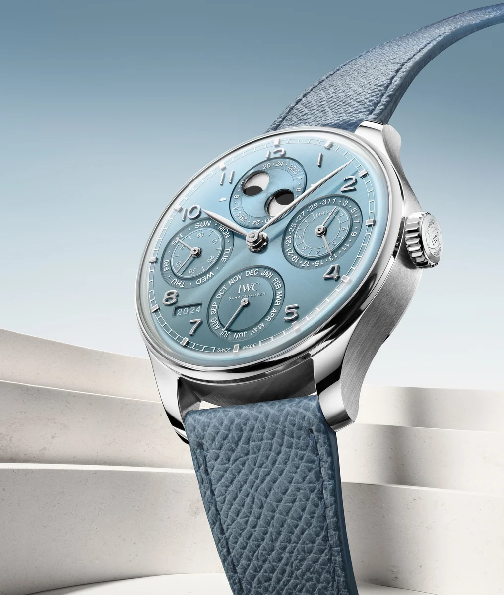 The IWC Portugieser Perpetual Calendar 44 Ref. IW503703 debuted in 2024. This Portugieser sports a White Gold case and a Blue dial. It is powered by caliber 52616, a self-winding movement with perpetual calendar and 168-hour power reserve.