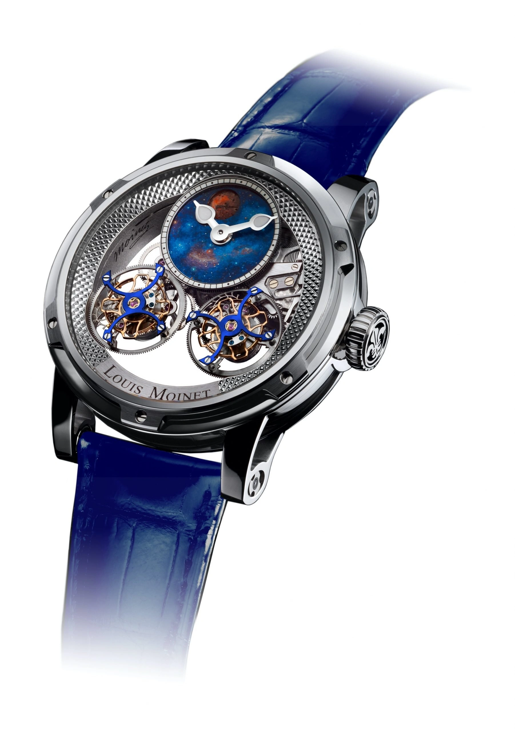 Located in Saint-Blaise on Lake Neuchâtel in Switzerland, Louis Moinet is an independent company passionately run by the Owner and Creative Director, Jean-Marie Schaller. He has made the Louis Moinet brand into one of which its namesake would have been proud, deftly incorporating the legendary watchmaker's principle passions of art and horology. "We are a real brand with a real tradition," says Mr. Schaller. "It’s important to me that we honour the heritage of Louis Moinet, who was both an artist and a brilliant watchmaker, and write new chapters of his history as if he were alive."