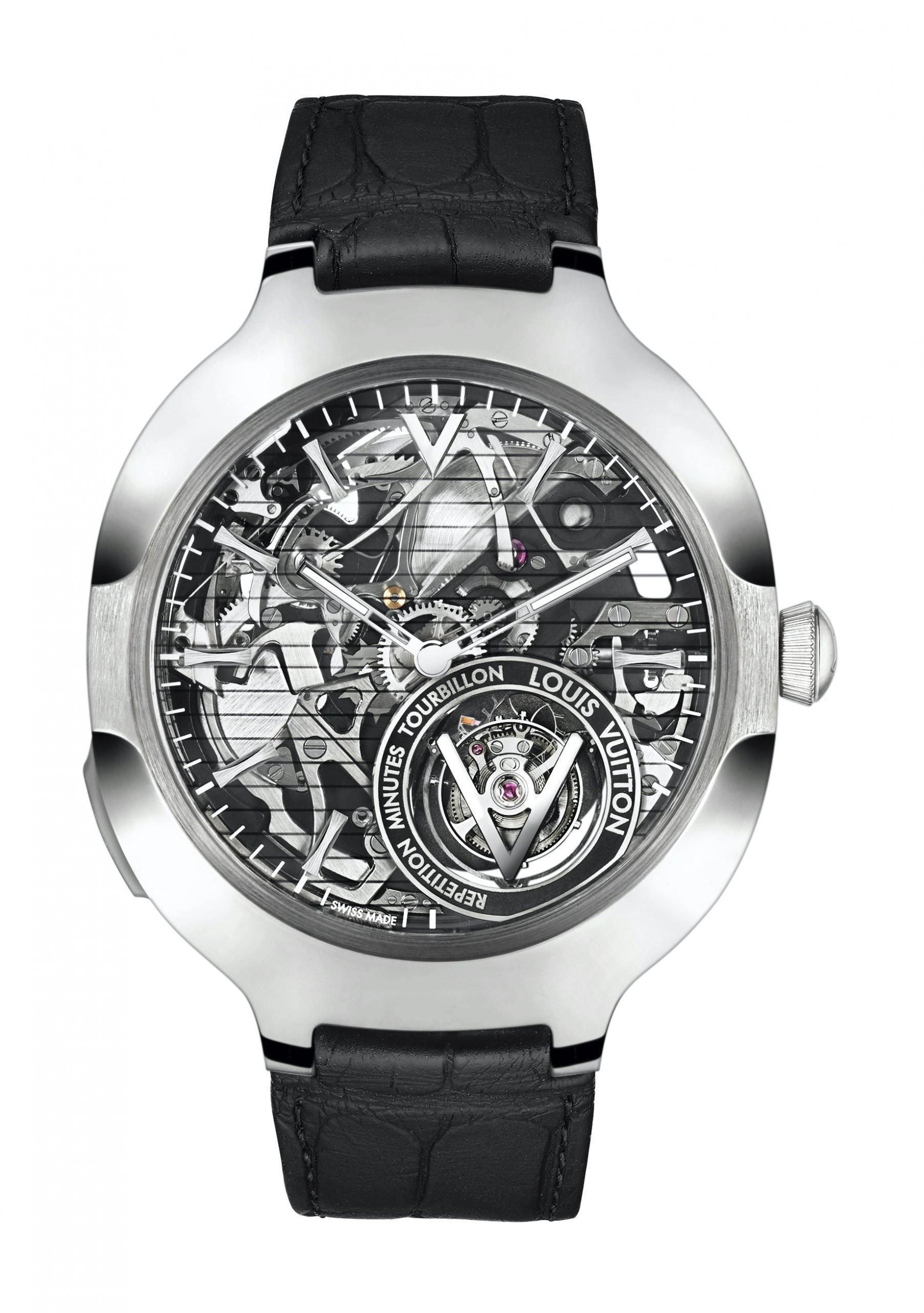 Since the creation of the first Louis Vuitton watch in 2002, quality has been an absolute and unquestionable priority when it comes to design, manufacturing, production, assembly, and finishing Louis Vuitton's entirely Swiss-made watches. The collections are Escale, Tambour, Tamour Convergence, Tambour Taiko and Original Tambour. The Maison defines the highest standards for the smallest components, whether they are visible from the outside or hidden deep inside the case, with several of its finest timepieces earning the prestigious independant seal of the Poinçon de Genève. Today, Louis Vuitton helps you measure time. Nothing changes, but everything is in motion. Your path becomes clearer to you as the hours, minutes and seconds tick by, drawing you at last within sight of your most cherished landmarks. After accompanying you on short journeys, voyages and expeditions, Louis Vuitton becomes fastened to your wrist for life. Louis Vuitton leaves its mark - and also yours - on time in the most original way: unprovokingly assertive, unaffectedly elegant, utterly discrete yet remarkable. You will discover, with time, a host of details that escape those who look too fleetingly. Conniving allusions to the brand’s heritage, looks of understanding exchanged by those in the know – the design of the numbers, the colour of the dial, the finishing touch of the stitching on the watchstrap, the engraving on a case, the colour of a hand – and you will then understand that a century and a half is very little time in which to achieve perfection. Each watch is engraved with an individual number ensuring the article’s singular character.