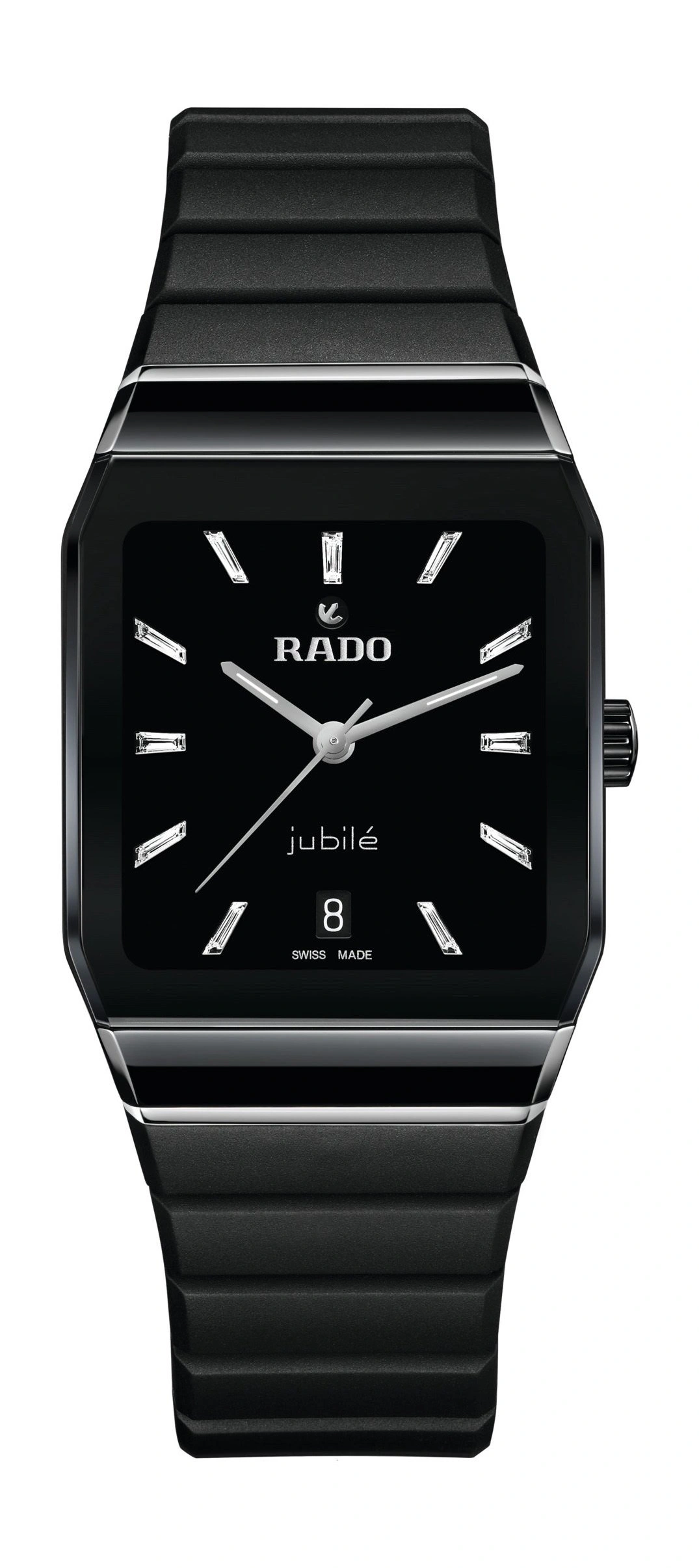 Discover the perfect harmony between comfort and aesthetics with the Rado Anatom Automatic Limited Edition 40th Anniversary. This watch is powered by a Rado caliber R766 movement and a non-magnetic Nivachron™ balance spring for precise operation with natural elegance. Designed with longevity and refinement in mind, the Rado Anatom Automatic Limited Edition 40th Anniversary features a polished black high-tech ceramic bezel and anti-reflective treated cylindrical sapphire crystal. The transparent stainless steel caseback reveals the mesmerizing mechanism, while the dial in captivating polished lacquered black and encrusted with 11 baguette diamonds as indexes adds allure to the watch's design.