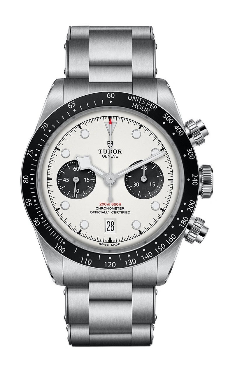 The Tudor Black Bay Chrono reference 79360N-0002 was introduced in 2021. This BB Chrono has a Stainless Steel case of 41.00mm, with a black anodised aluminum tachymeter insert. The Silver dial has contrasting sub dials. Power comes from caliber MT5813.