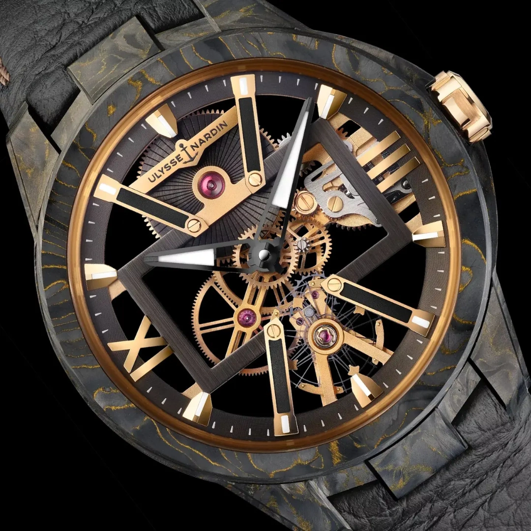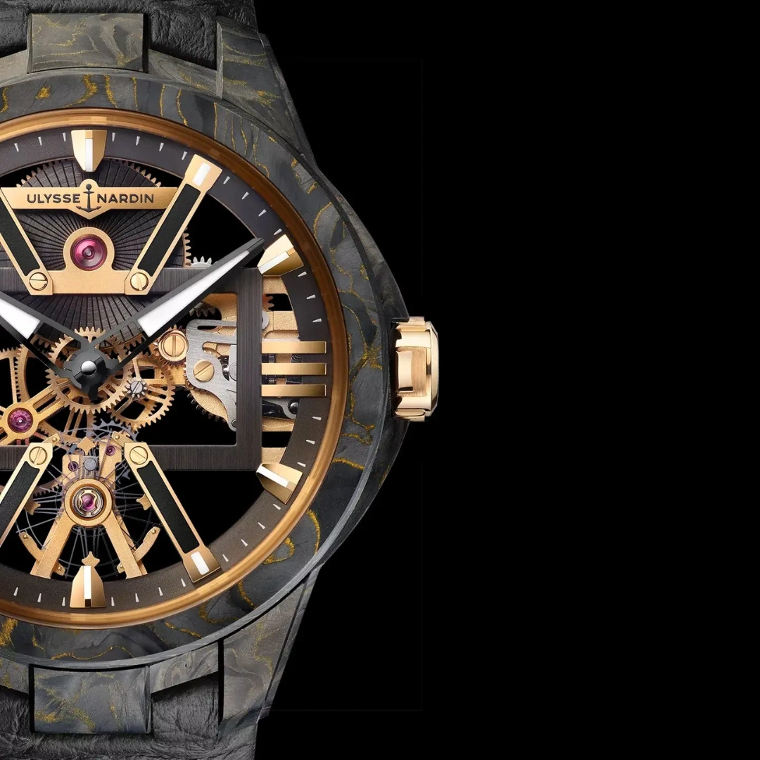 Ulysse Nardin Blast Skeleton X Ref. 8165-182B-3BLACK. The Skeleton X, a new Manufacture movement that lays bare its audacious technology in an exquisite exhibition of fine watchmaking’s most challenging technique. Inner beauty revealed, not concealed: this openworked wonder takes skeletonization to the X-level. Bold and powerful, it is an X-ray interpretation of the future of watchmaking design, where we see everything, including the very architecture and functioning of time. If you’ve got it, flaunt it. The Skeleton X leaves nothing to the imagination.
