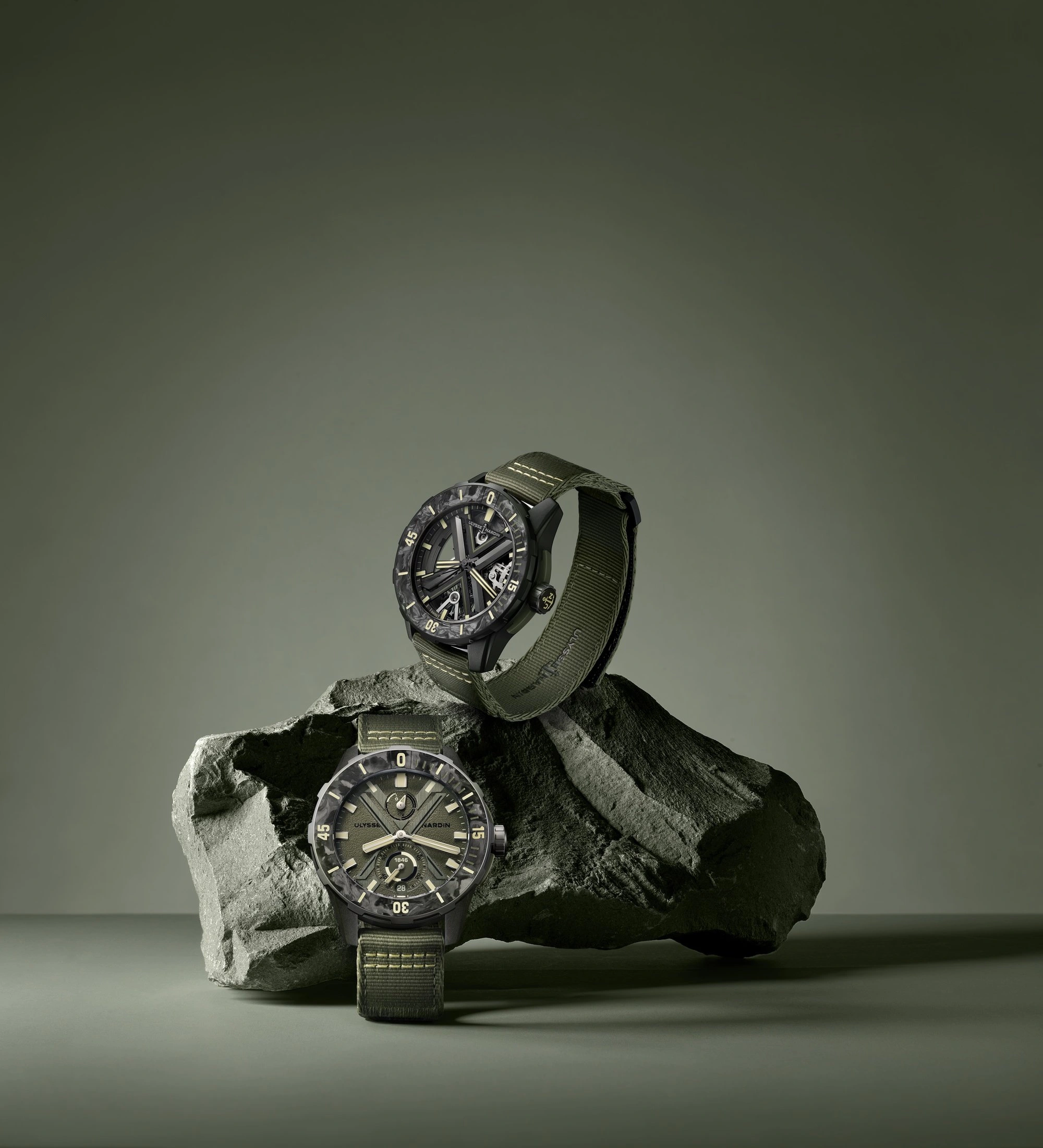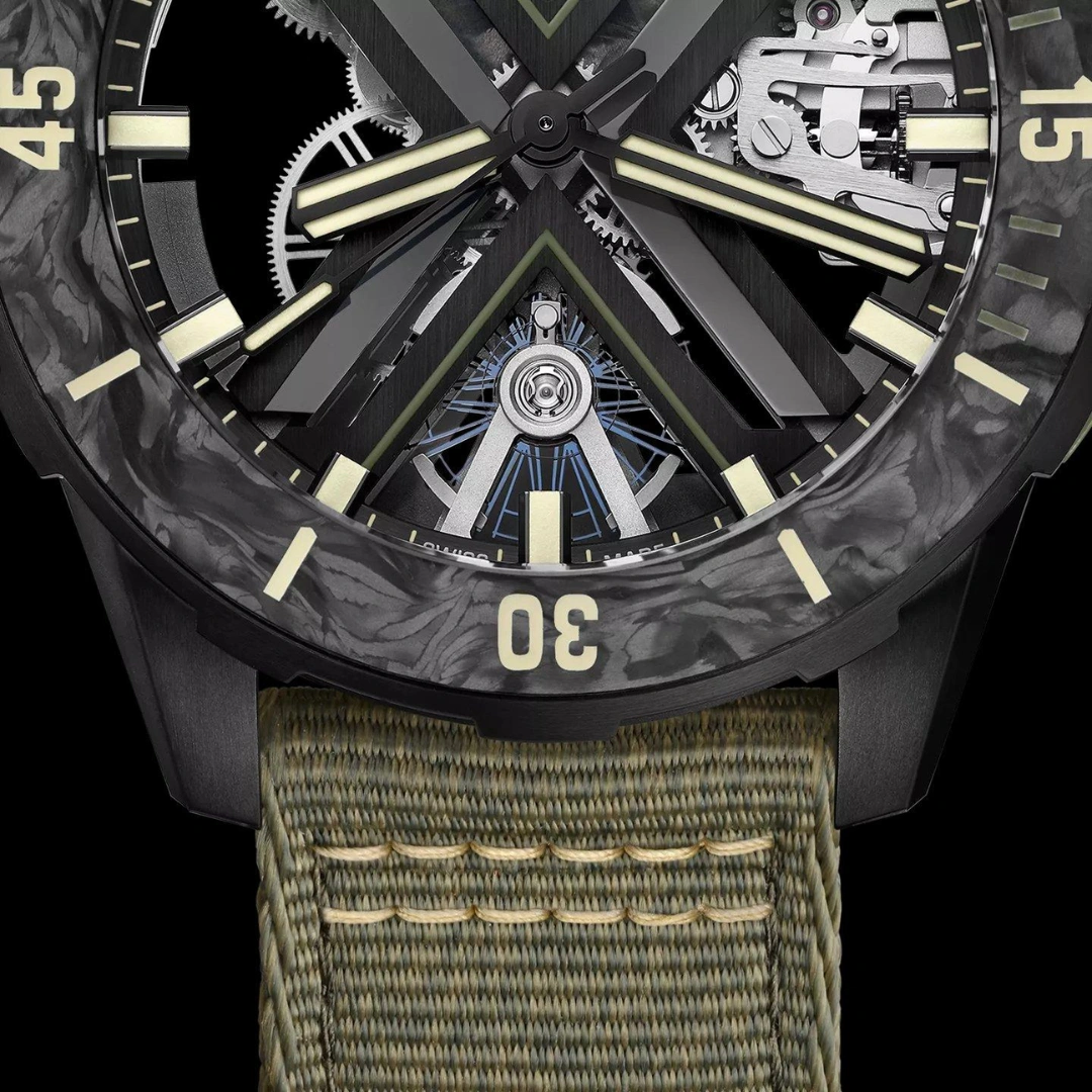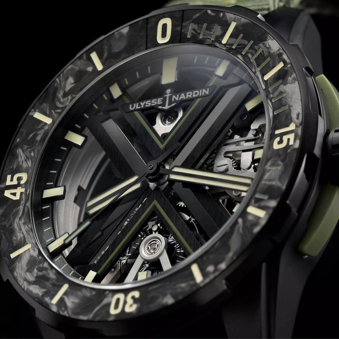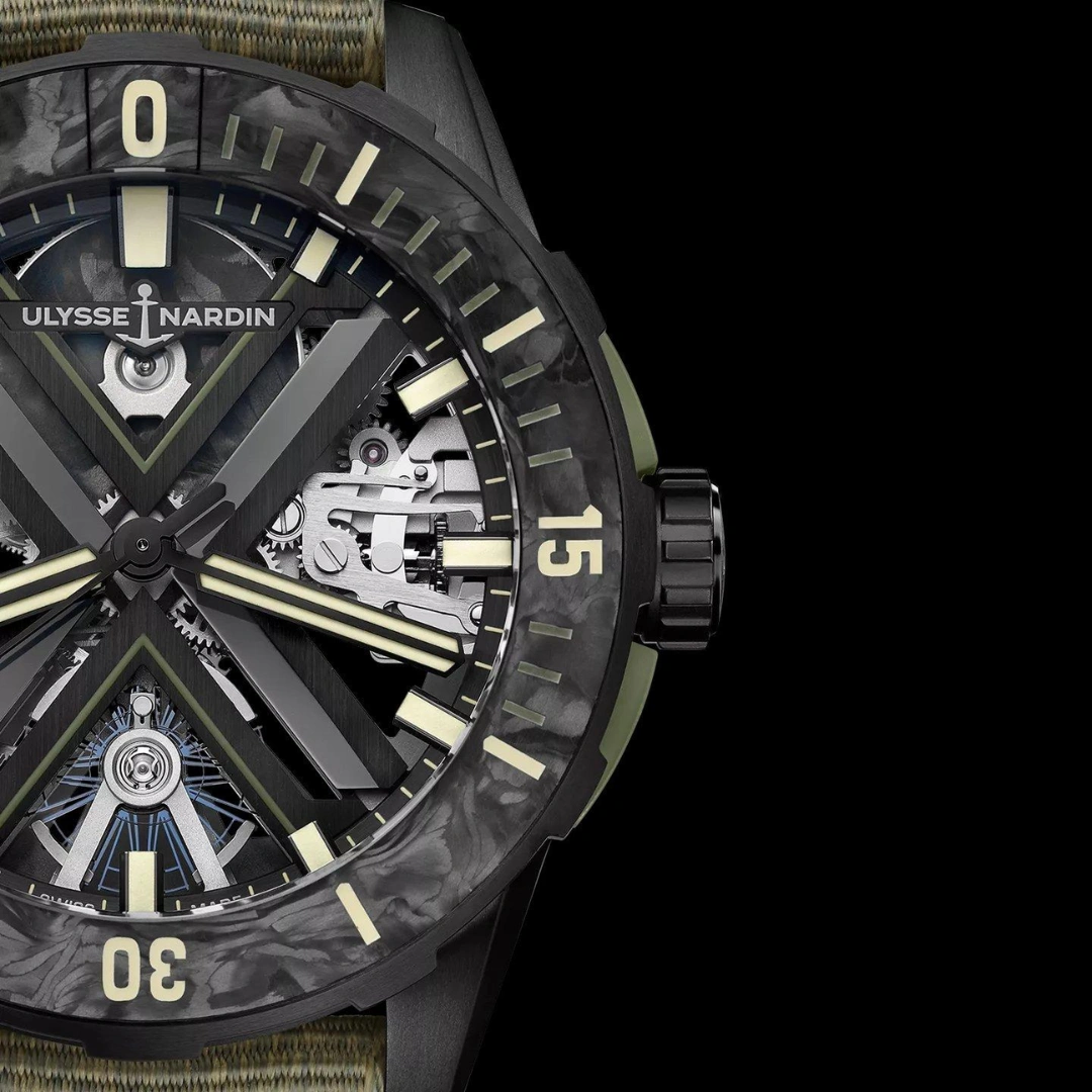The DIVER X Skeleton OPS Ref. 3723-170-2C/0A with a 44mm case size in Carbonium® / black PVD titanium. Caliber UN-372 has a 72 hours power reserve. A sporty appeal, while taking a radical step towards transparency Diver X Skeleton is an explosive fusion between the sporty design of a Diver and technical prowess of the Blast Skeleton.