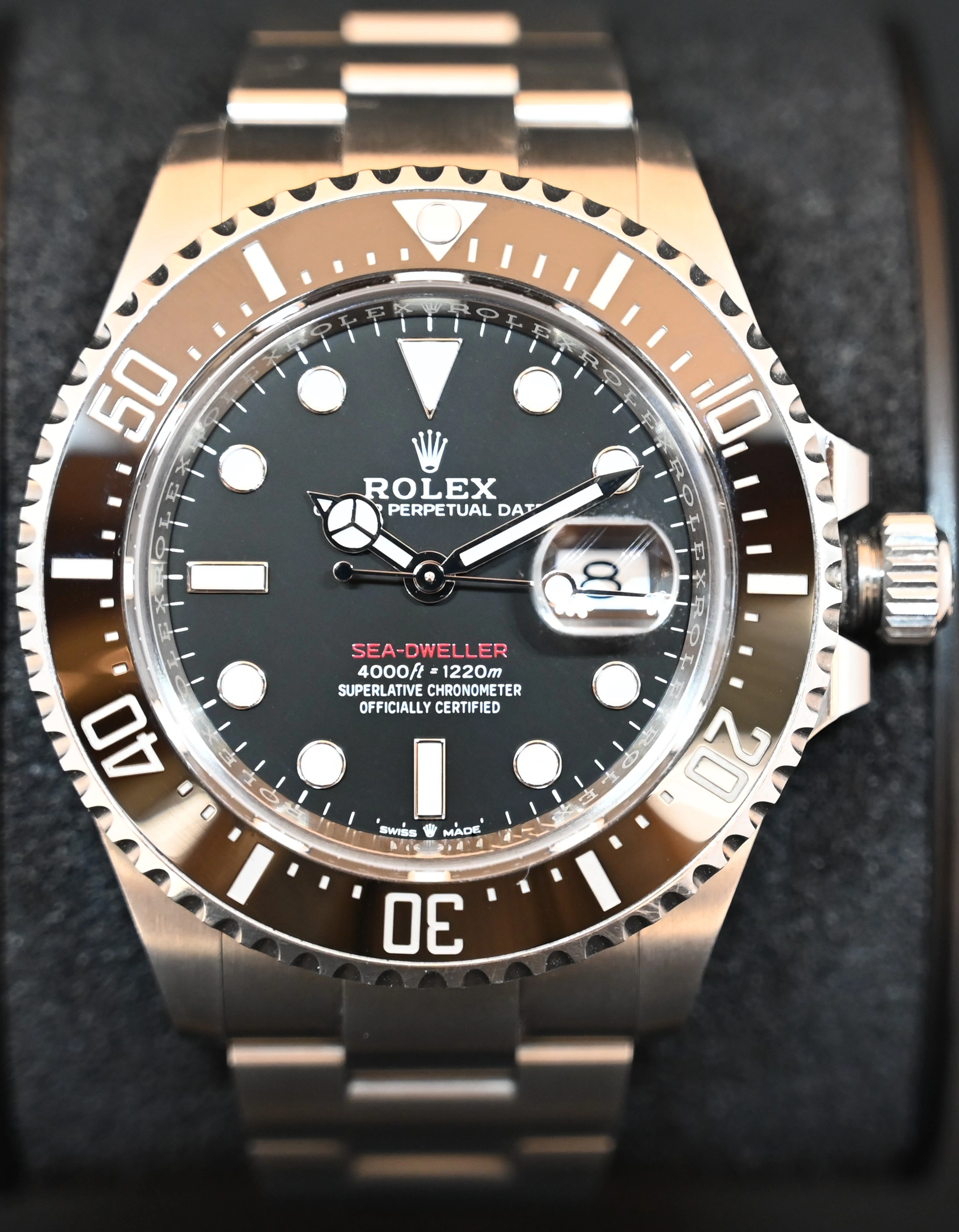 The Rolex Sea-Dweller 126600-0002 debuted in 2022 as a replacement for the earlier 126600-0001. This version of the Sea-Dweller does not feature the Fliplock.