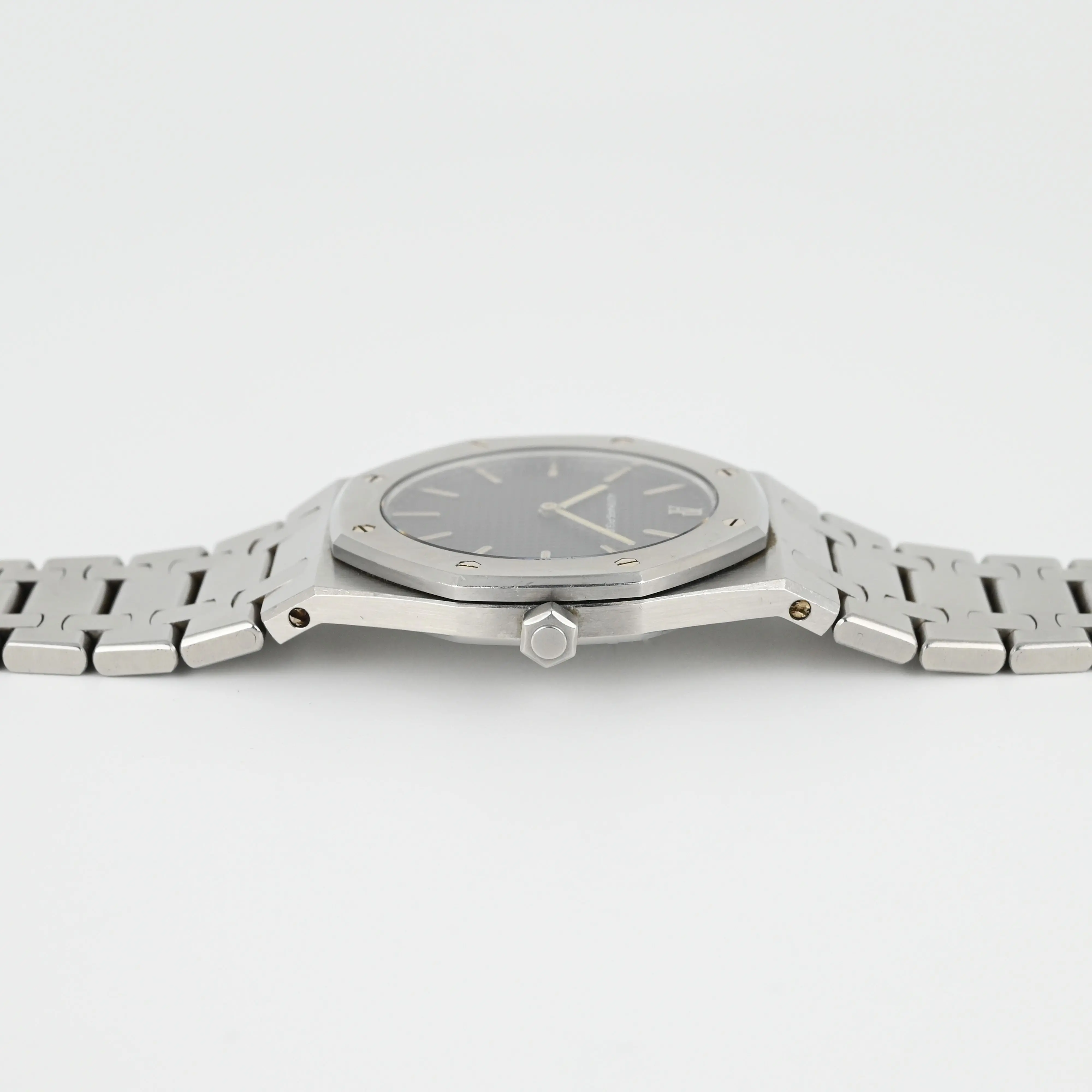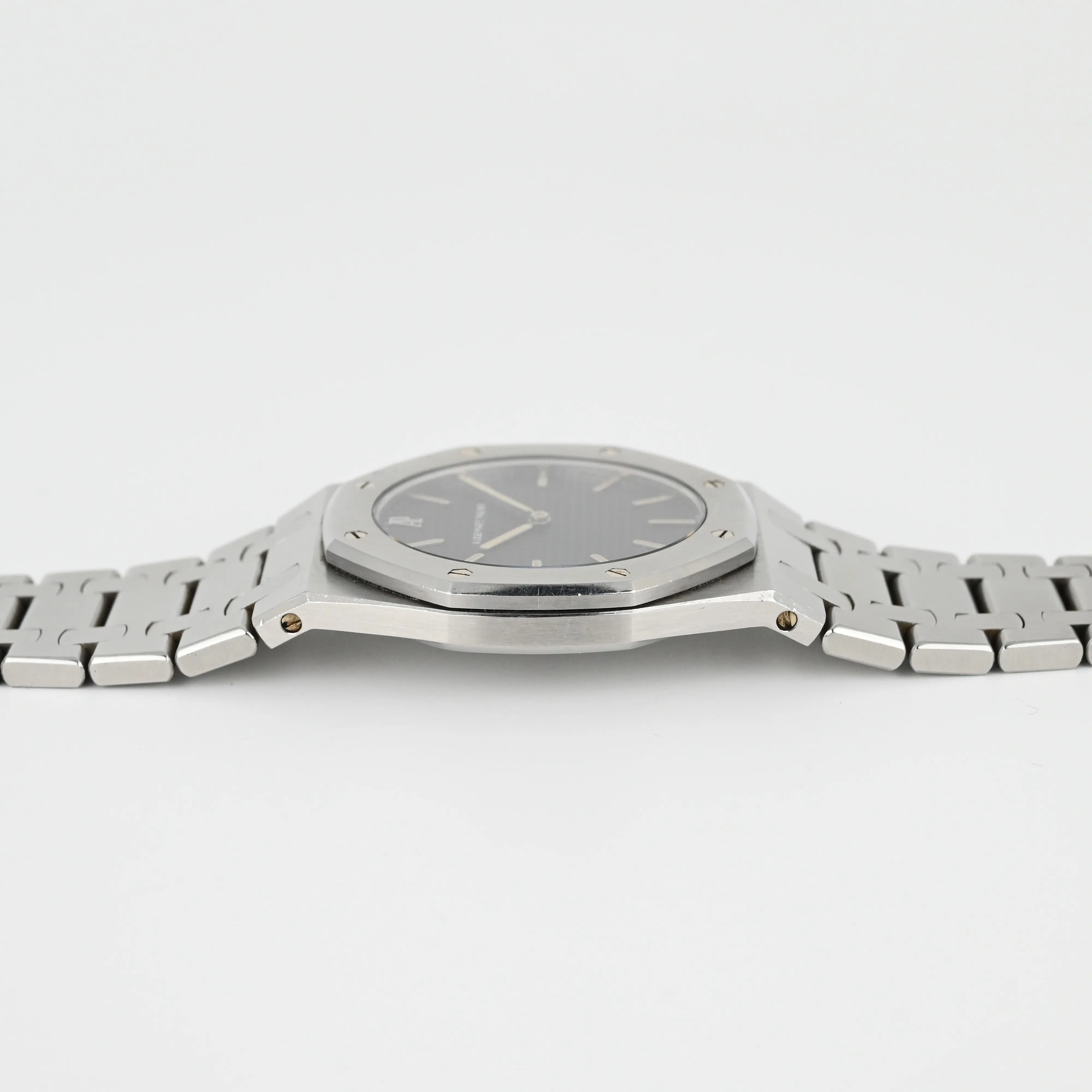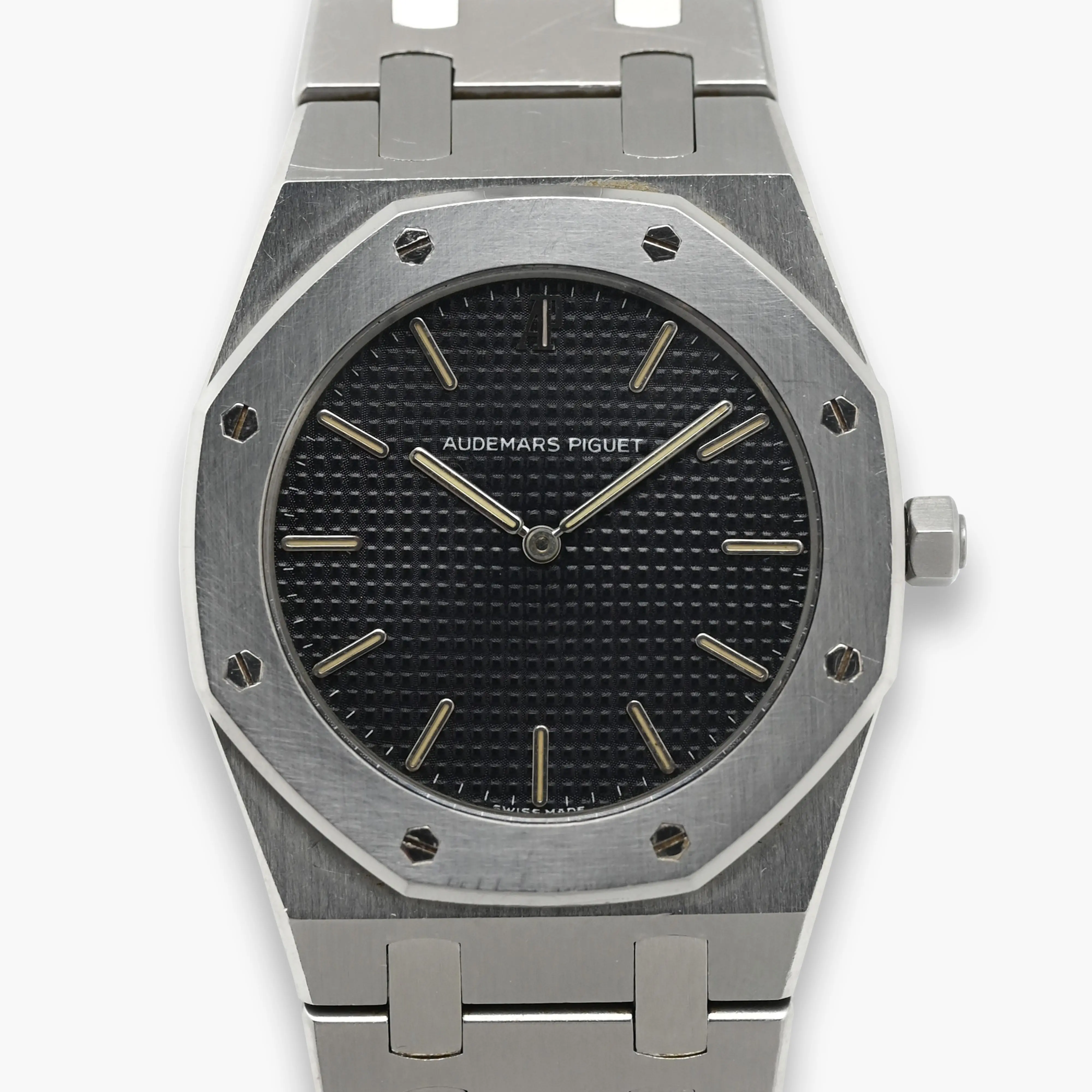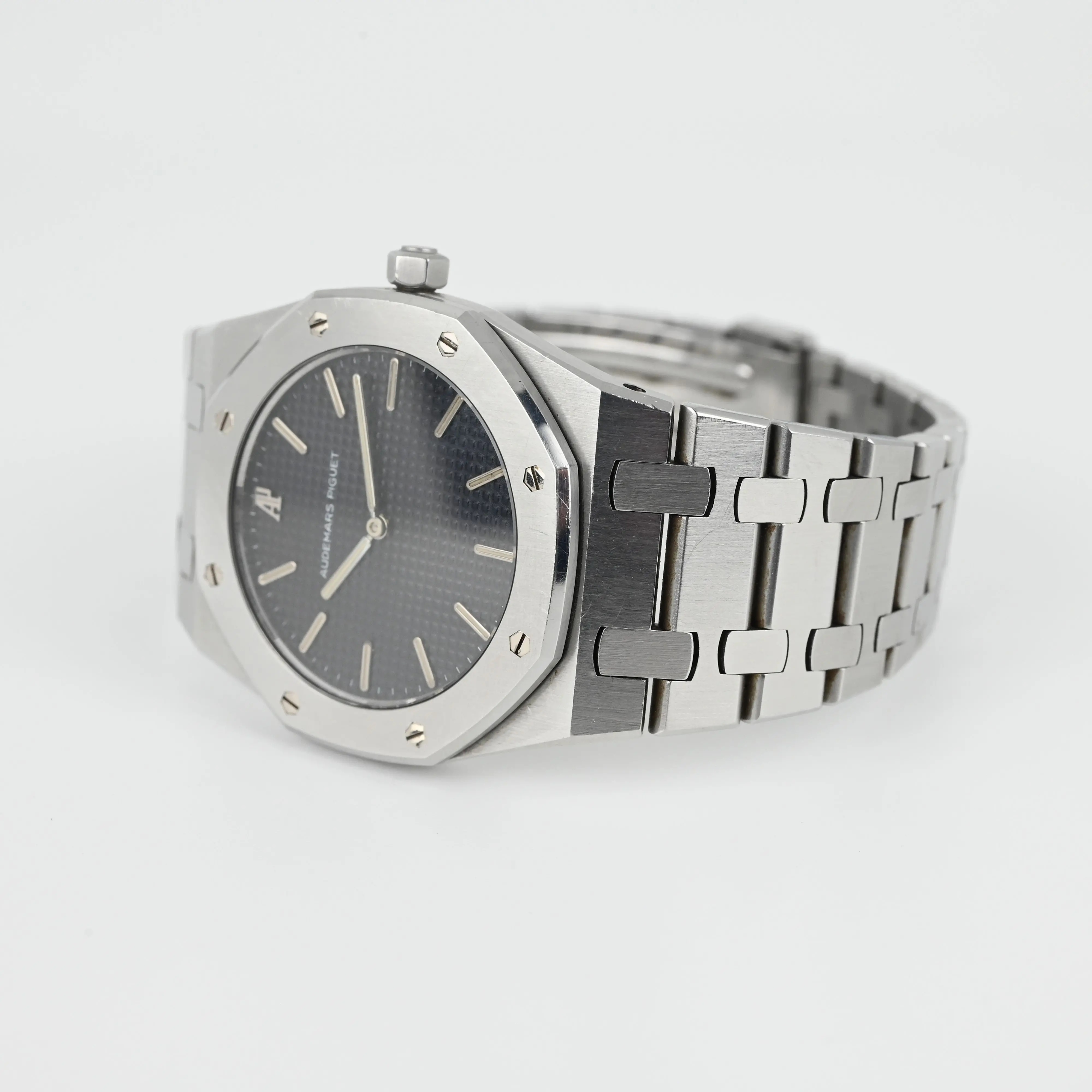This Audemars Piguet Royal Oak stainless steel watch is in very good condition. The case and bezel show superficial scratches from normal wear and retain their original contours and thickness.