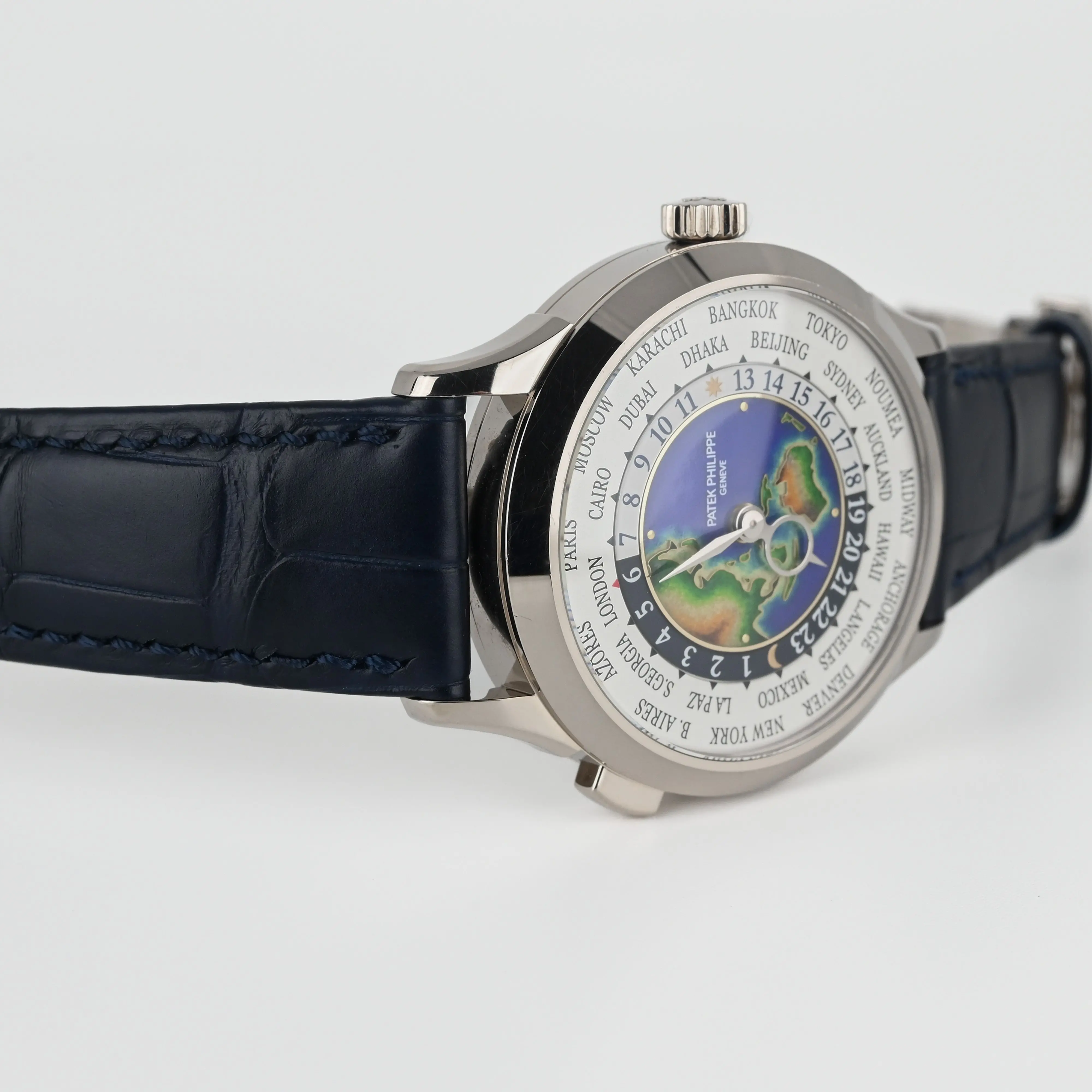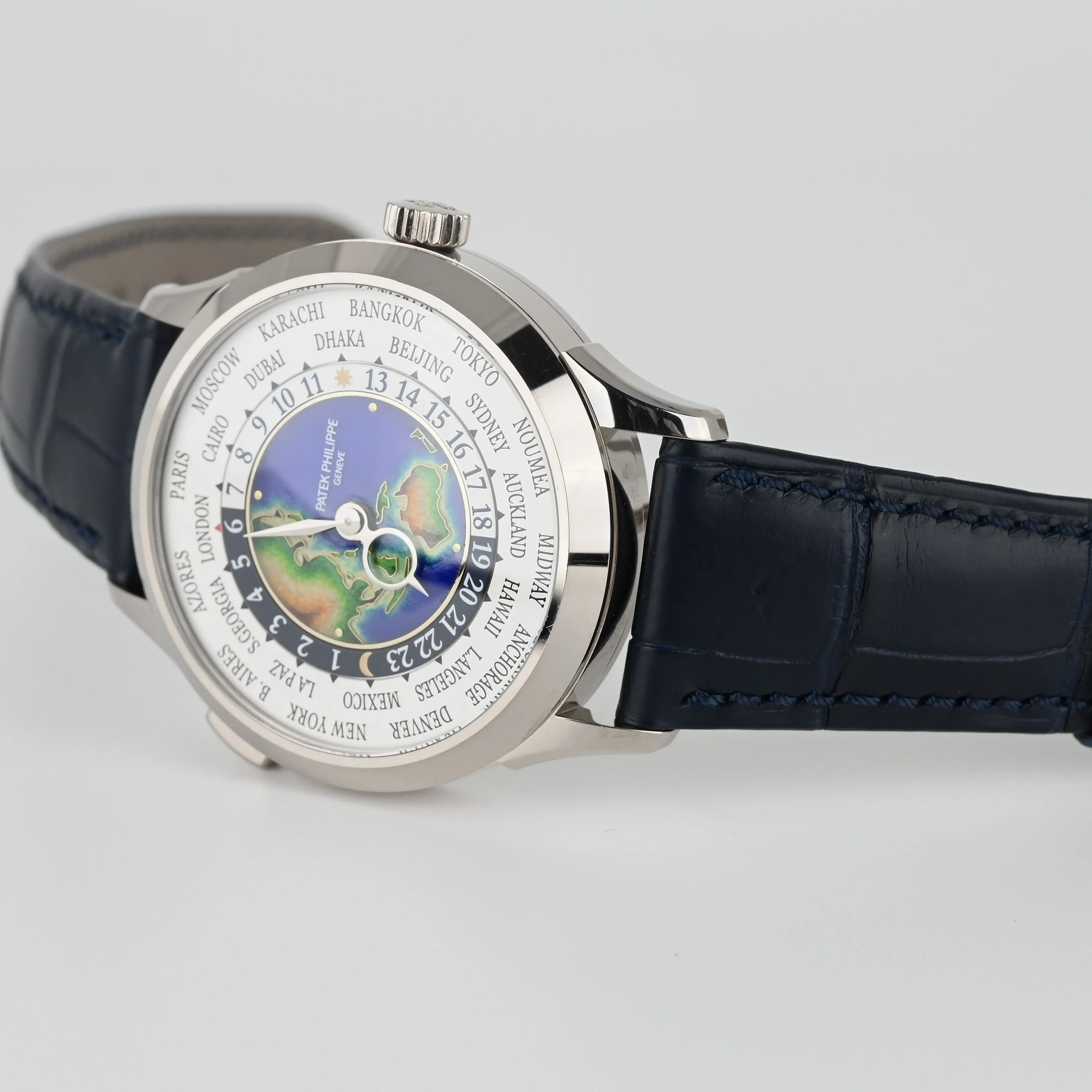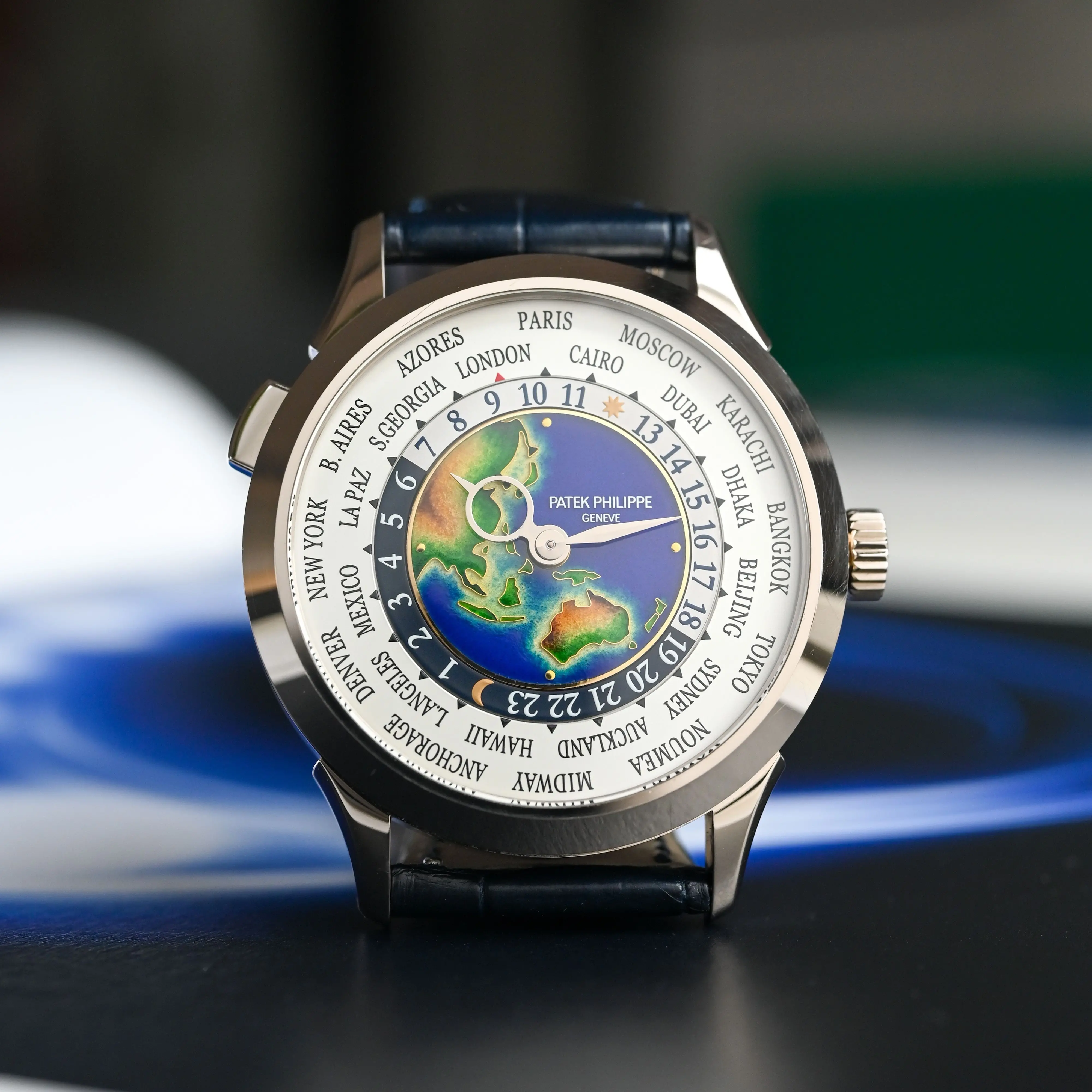 The Patek Philippe World Time Ref. 5231 was introduced at BaselWorld 2019. It pairs the brand's much admired World Time complication with cloisonné enamel dial center with a new case design. Initially only offered in yellow gold, 2022 saw the addition of the white Gold Ref. 5231G-001.