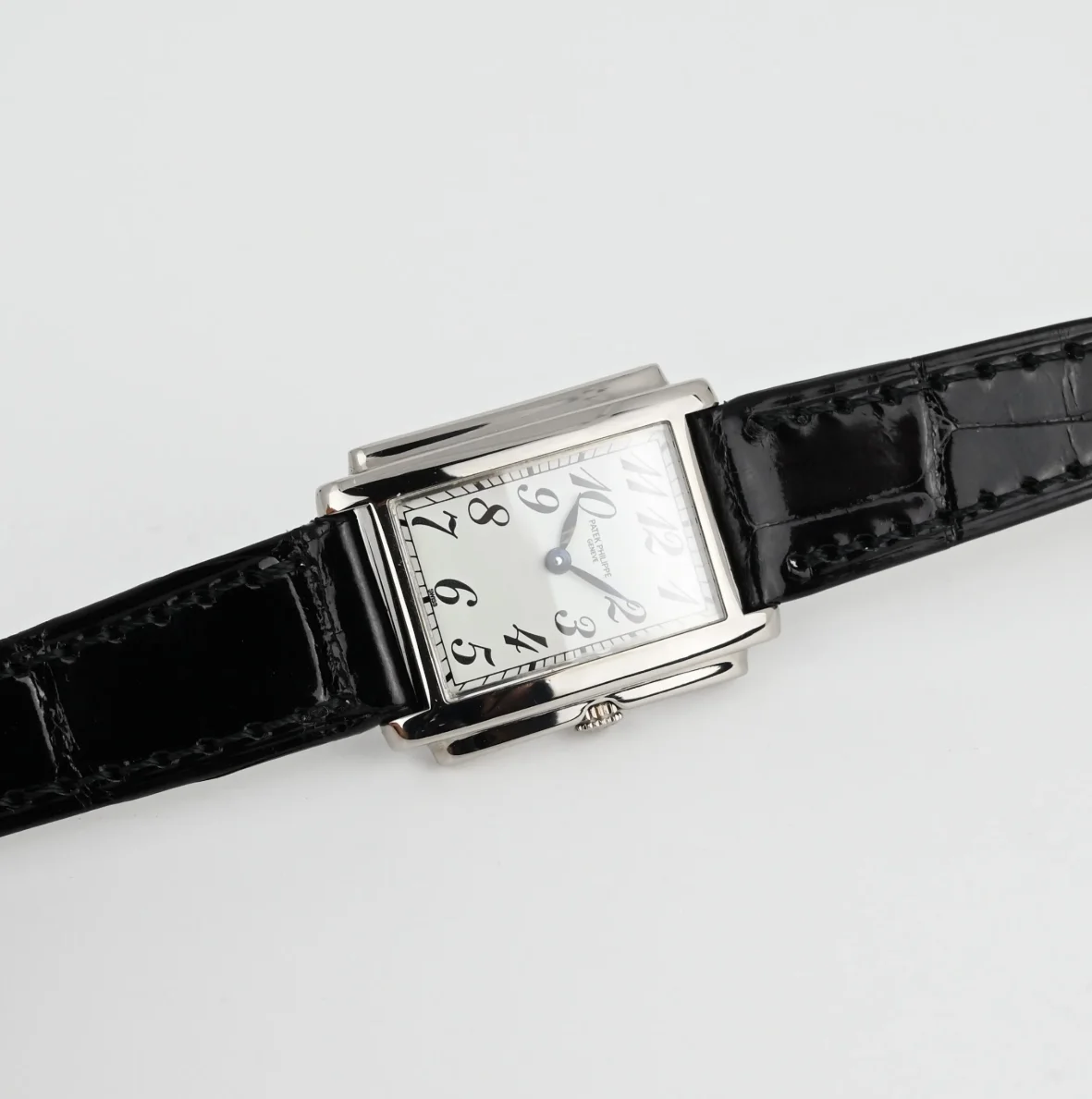 The original Patek Philippe white gold buckle is in very good condition.