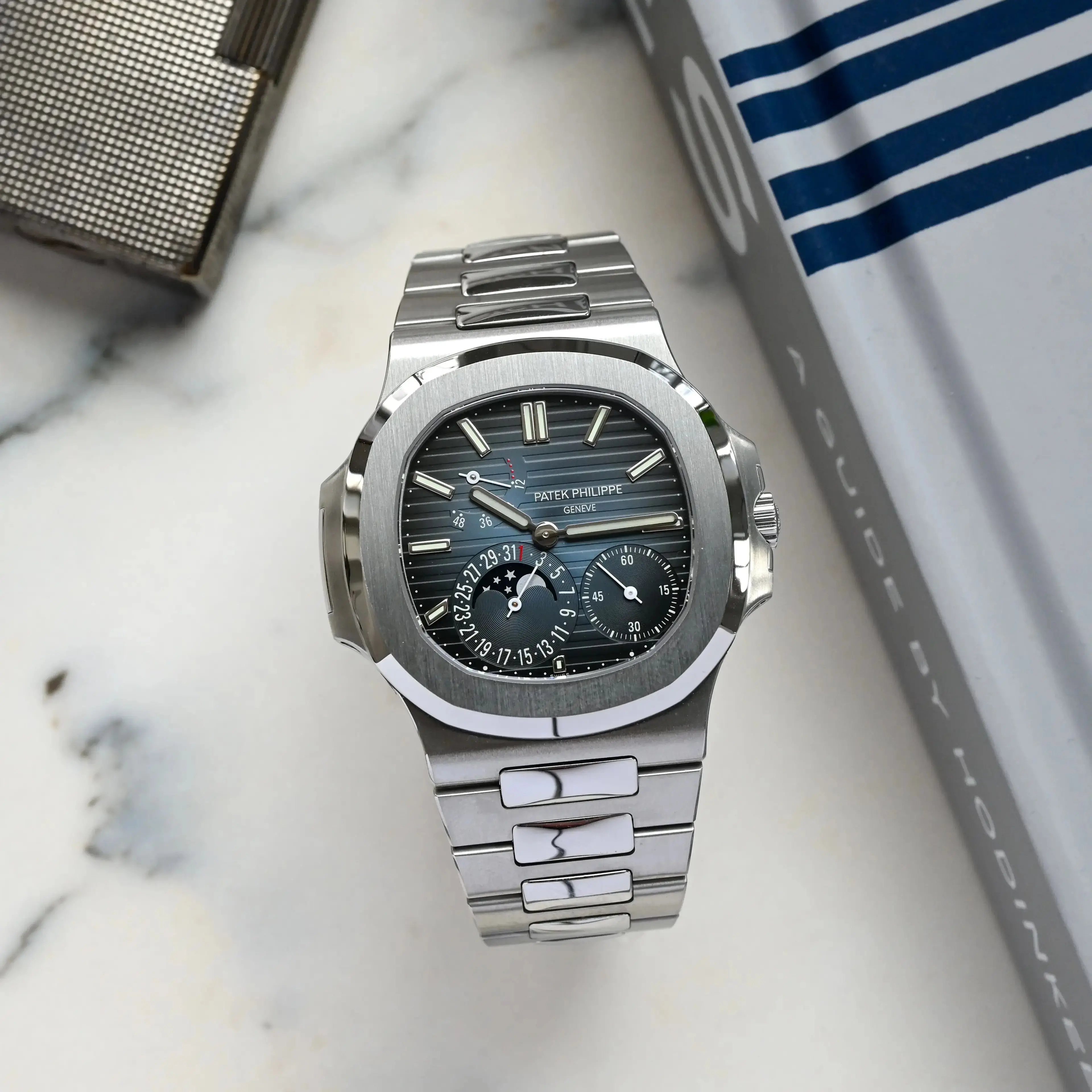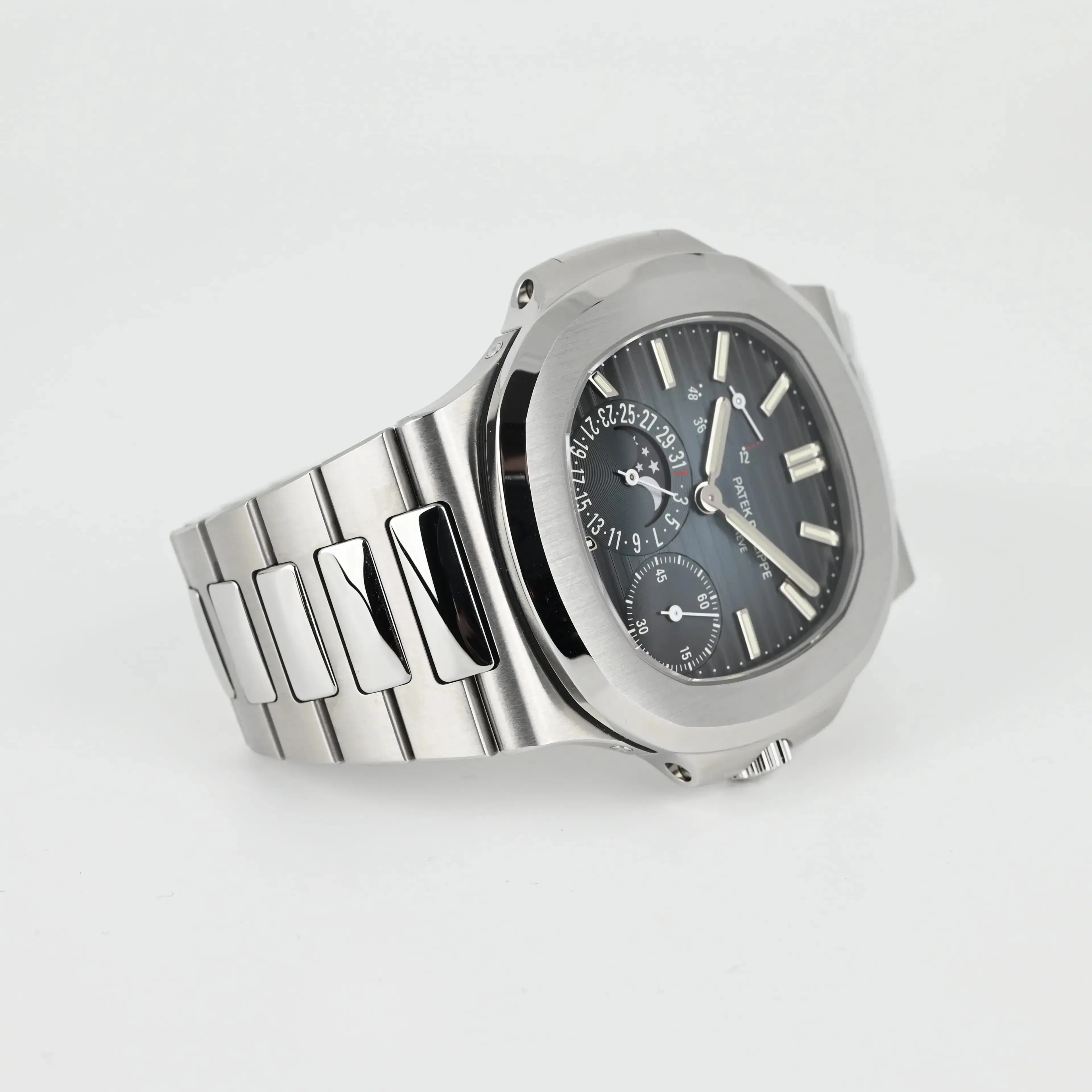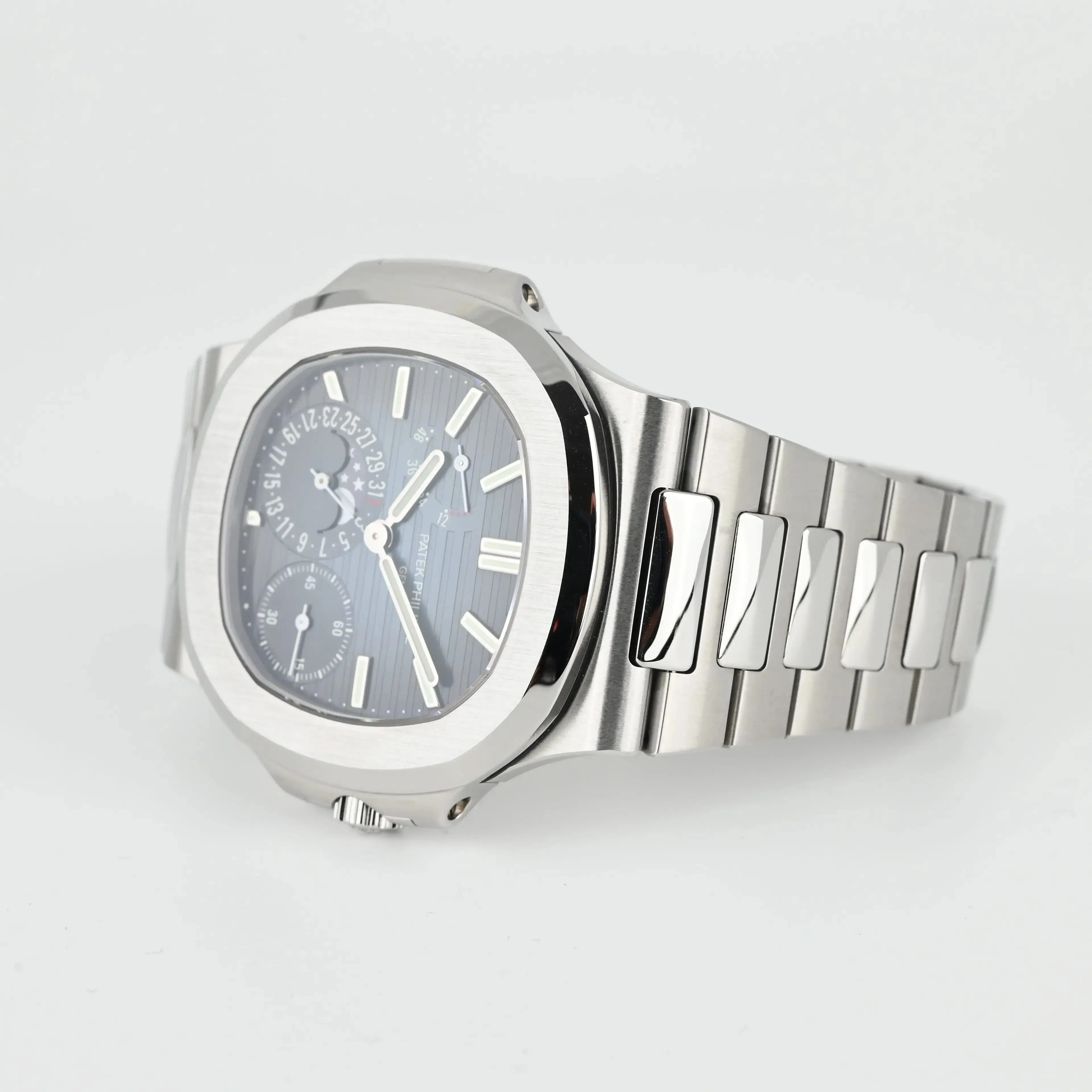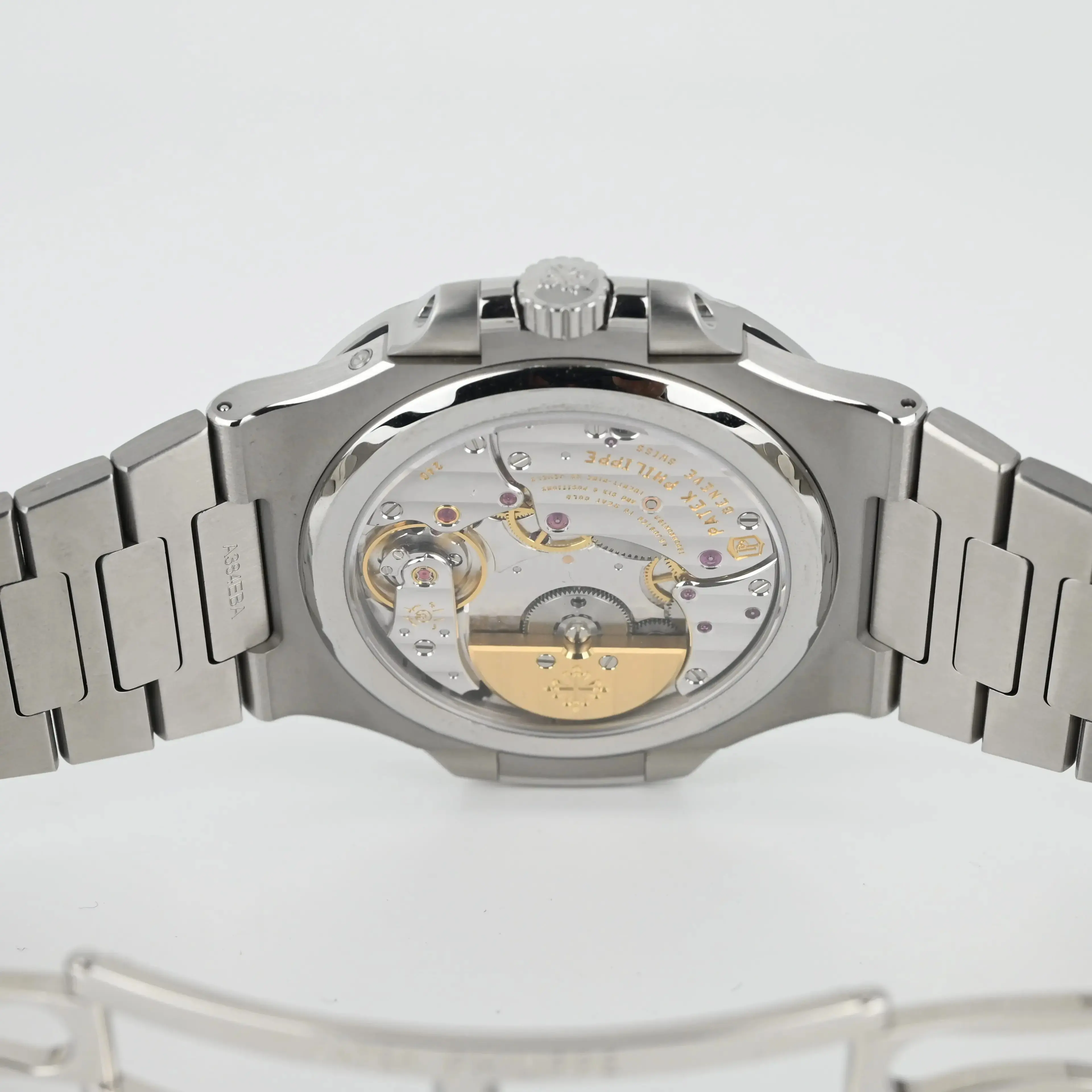 This steel Patek Philippe Nautilus is in mint condition. The case and bezel are brand new and show no scratches. The steel bracelet is in mint condition and has never been worn.