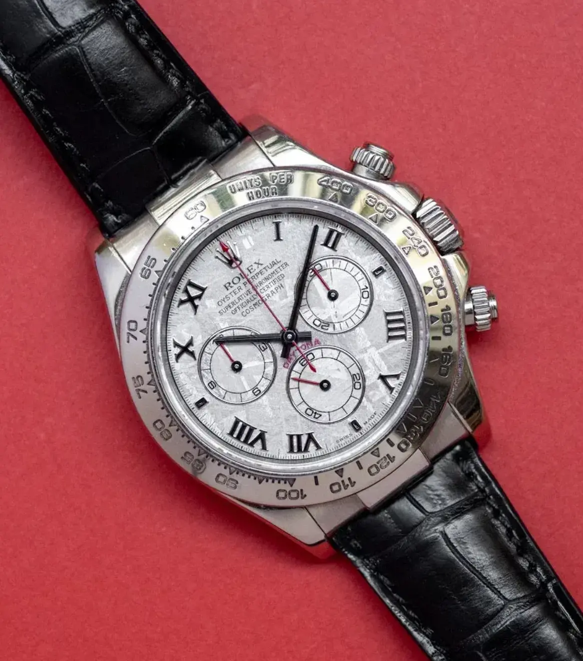 A historic model in the Rolex collection, the Cosmograph Daytona presented here features an exclusive Meteorite dial mounted in a white gold case.