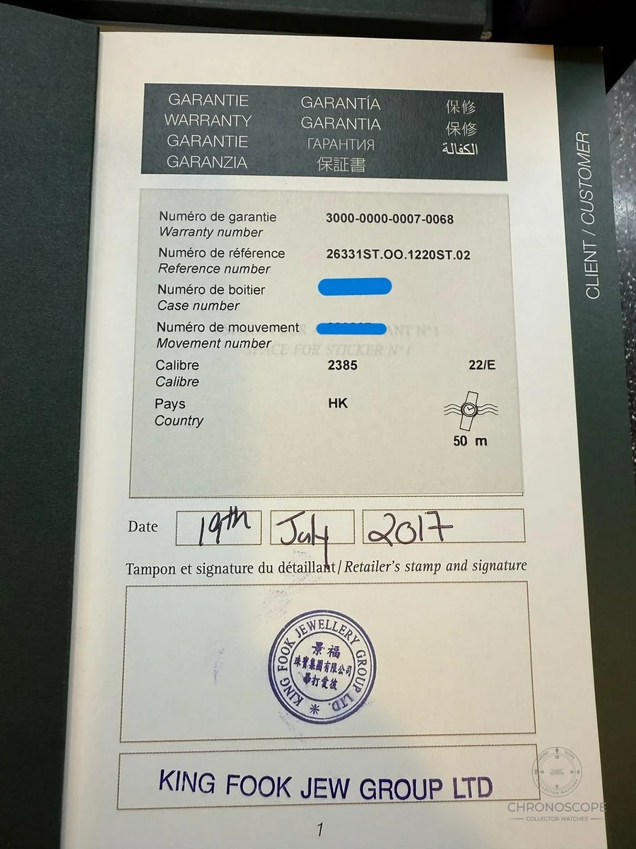 It received a full AP service end of August 2022. First owner watch in mint condition, 12 months warranty.