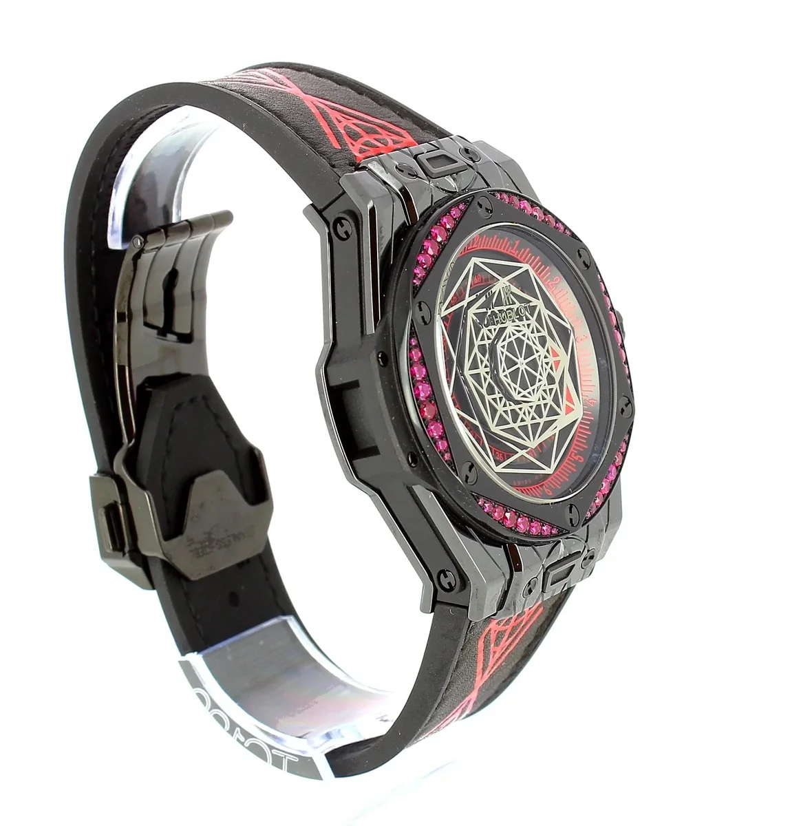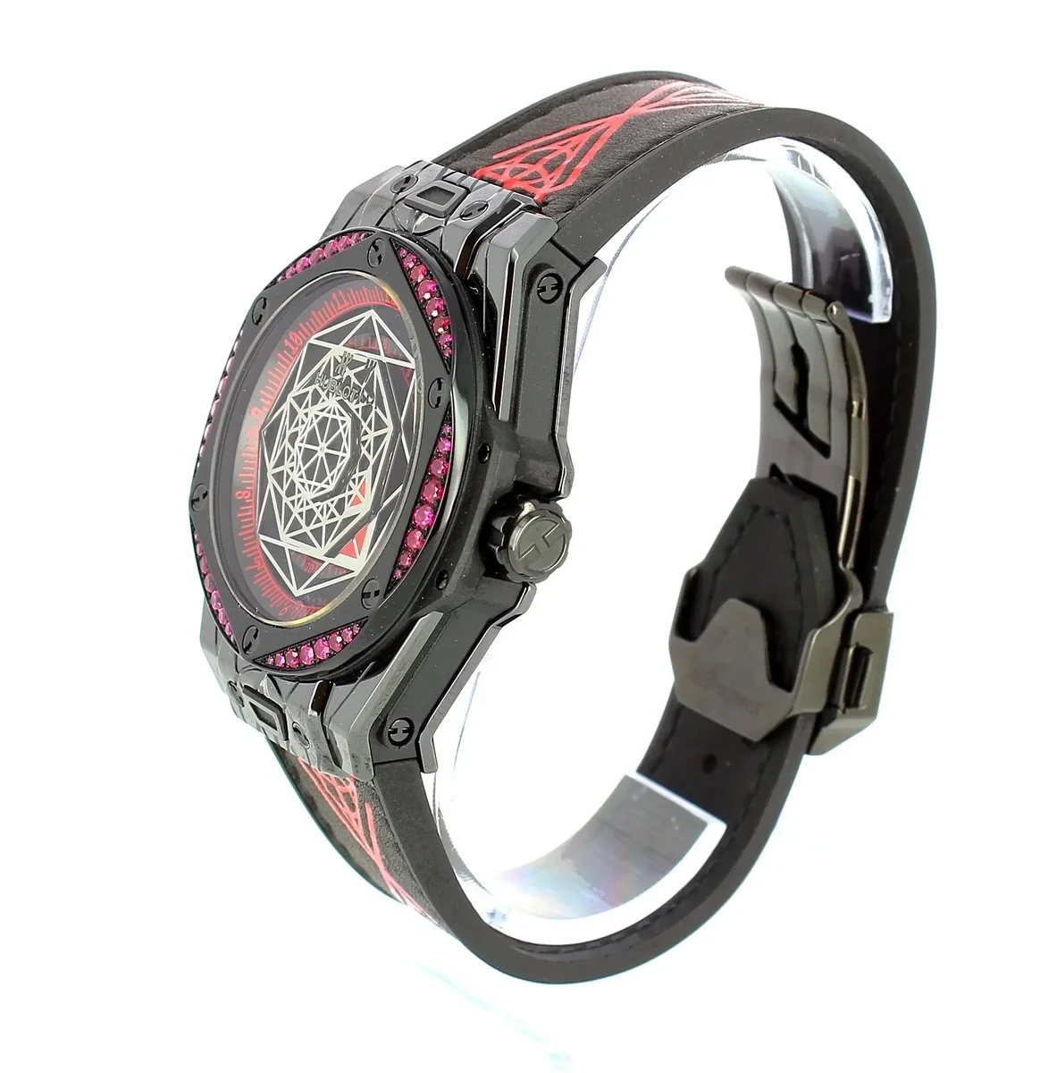 This ground-breaking, high-quality approach to watchmaking is summed up in its philosophy ‘Be First, Unique and Different.’ It gradually led to other collections with innovative designs: Classic Fusion, Shaped Collection (Spirit of Big Bang, Square Bang) and Manufacture Pieces. These draw on high levels of craftsmanship, both in terms of the materials so dear to Hublot (such as Magic Gold, brightly-coloured ceramics and sapphires) and its manufacture movements (Unico chronograph, Meca-10 and high complications such as the Tourbillon, the Cathedral Minute Repeater and the specific Manufacture Pieces movements).