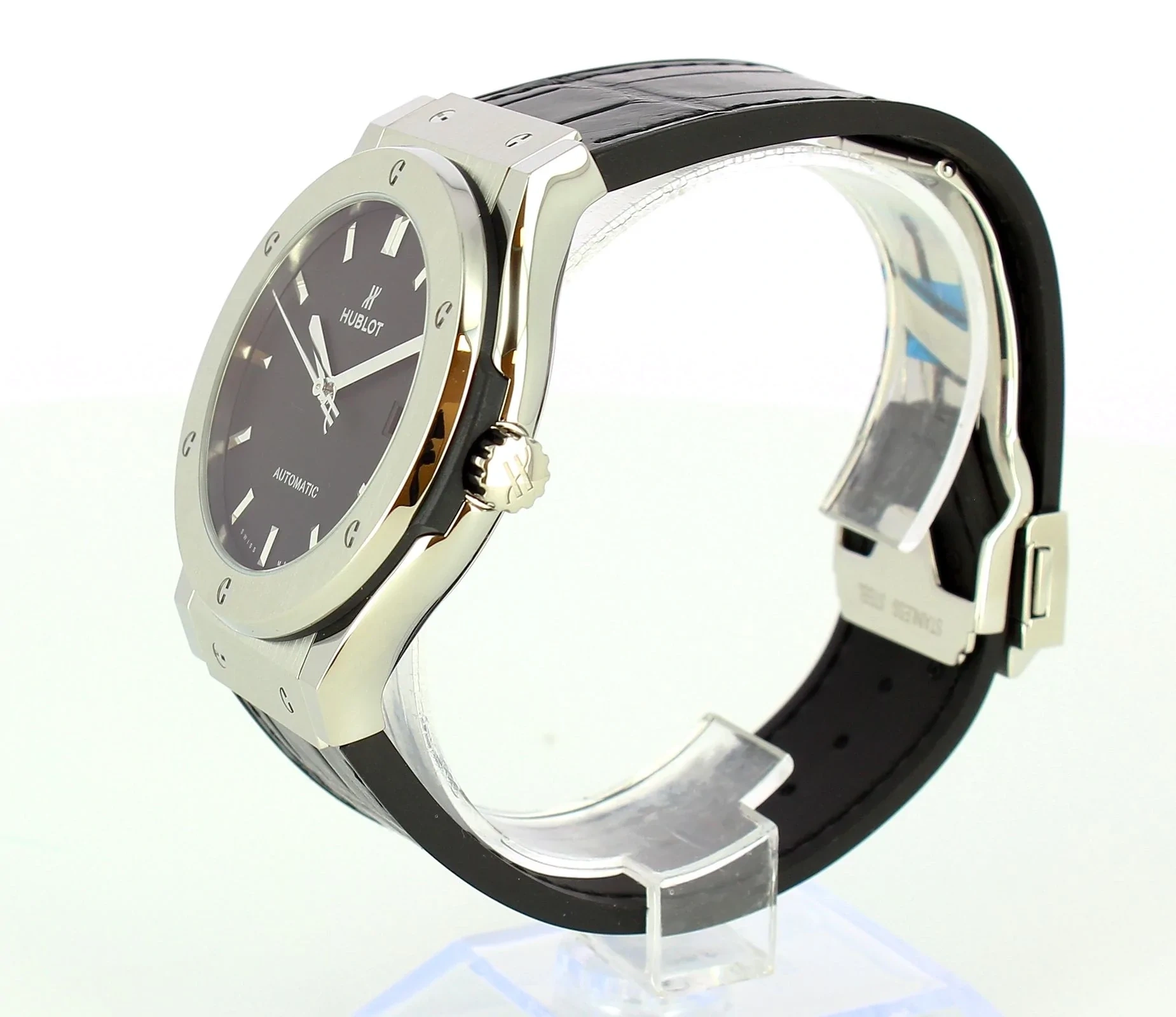 Hublot is a Swiss watch manufacturer founded in 1980 and based in Nyon. For its first ever timepiece, this fundamentally disruptive company combined gold with a rubber strap in a case with a design inspired by a ship’s porthole (hublot in French). Thus, the Art of Fusion was born, blending tradition, innovation, craftsmanship, worlds and talents. It became the brand's aesthetic and technical signature.