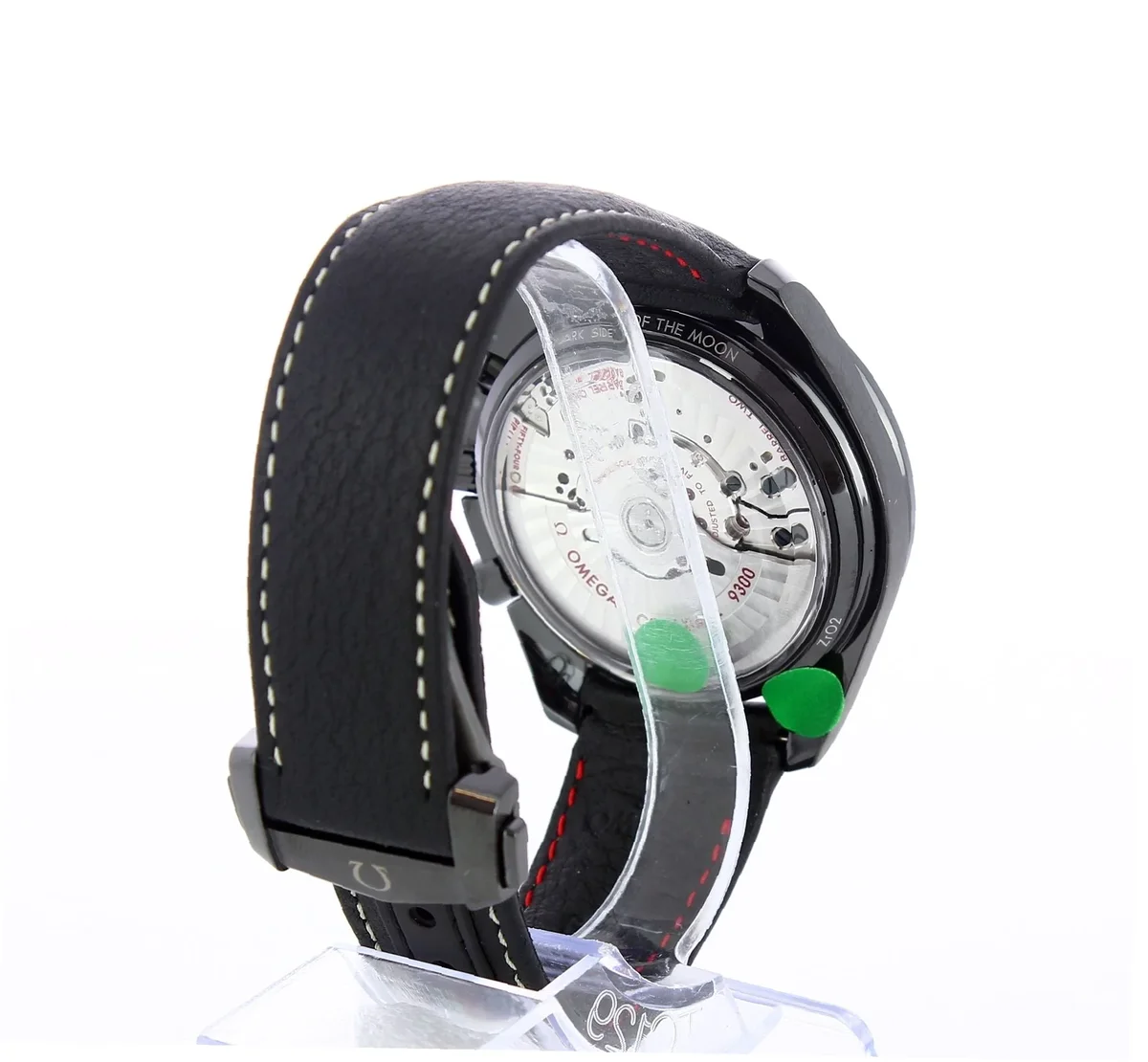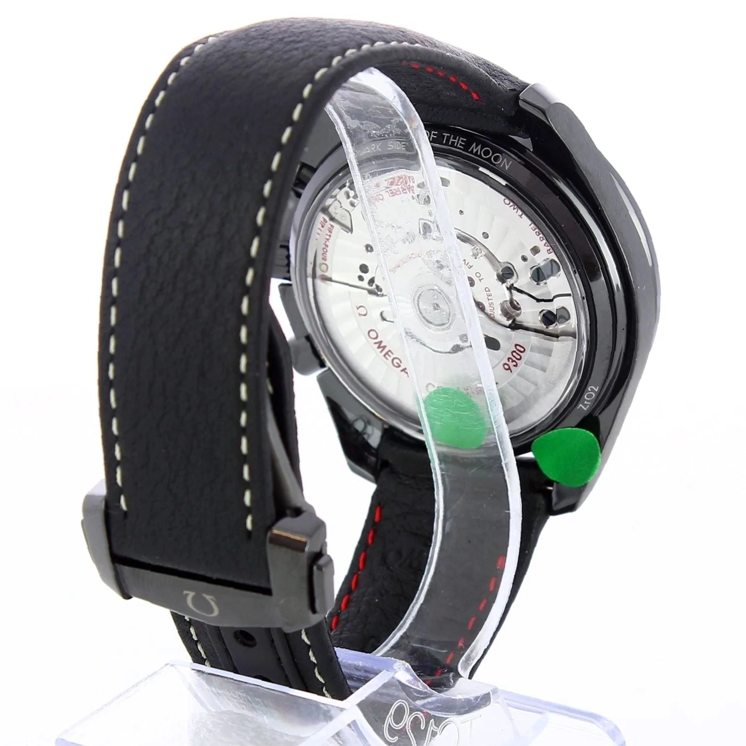 Introduced at BaselWorld 2015, the Dark Side of the Moon 'Pitch Black' resembles the original 2013 Dark Side of the Moon, yet it somehow appears a tad less high-tech and somewhat warmer. The bezel now is filled with SuperLuminova ass well, as it is on the Grey Side of the Moon. It is fitted with a leather strap with ecru stitching.
