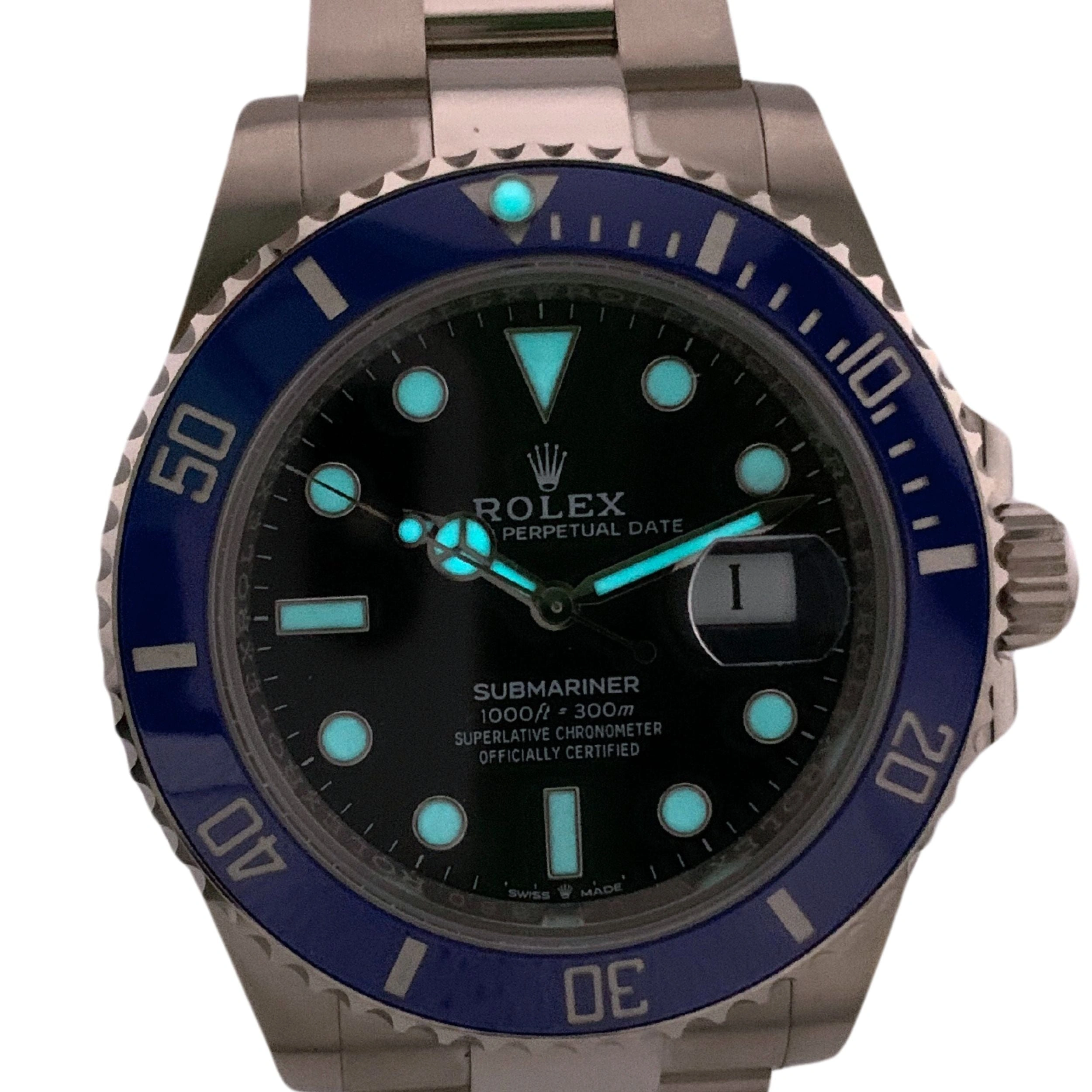Introduced in 2020, the Rolex Submariner reference 126619LB-0003 has a White Gold case of 41.00mm, which is ever-so slightly larger than the previous generation. Power comes from the self-winding caliber 3235. The dial is Black, whilst the 'Cerachrom' bezel insert is blue.
