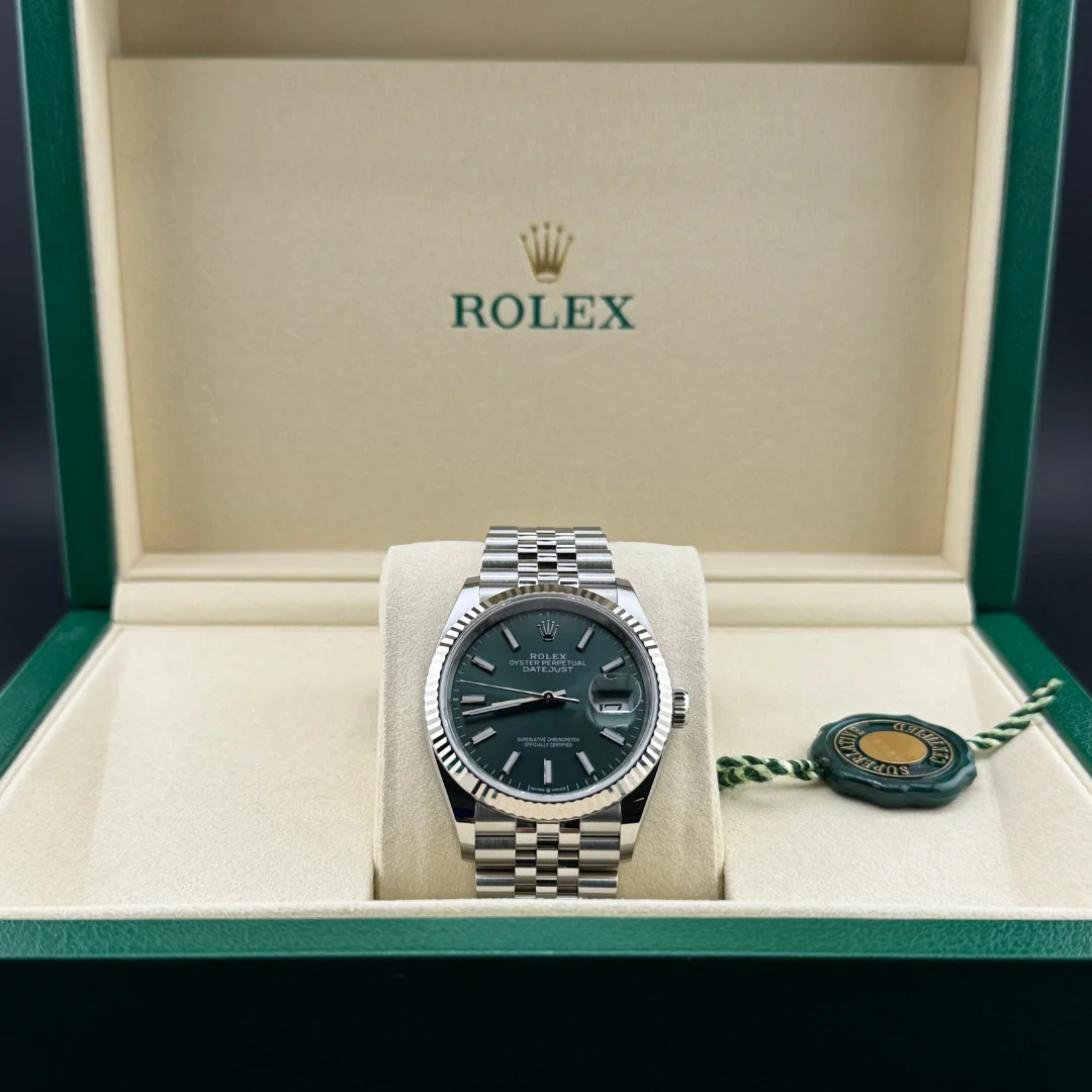 Rolex introduced a new generation of the Datejust 36 at BaselWorld 2018. It features a subtly resigned case paired with a new movement - caliber 3235. Per Rolex tradition, it was first offered in either steel & yellow gold or steel & 'Everose' rose gold, with the stainless steel variations such as the present watch following in 2019. Reference 126234-0051, powered by caliber 3235, has a stainless steel case of 36.00mm. It is crowned by a white gold, fluted bezel. This particular version has a Green dial, although many different options exist.